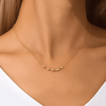 Изящно и модерно, колието "Golden Sphere" съчетава нежна сребърна верижка с 5 деликатни топчета в златист цвят. Универсалният му дизайн го прави идеално за ежедневна употреба, добавяйки фин акцент към всяка визия. Лекотата и модерният нюанс на колието го превръщат в задължителен аксесоар за любителите на семплата елегантност.