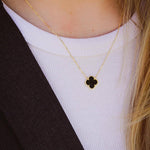 Златисто Сребърно Колие Детелина Със Черен Седеф S925