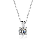 Сребърно колие S925 с цирконов камък, носено върху бяла риза, близък план на шията.