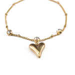 Елегантна златиста гривна с висулка във формата на сърце и бляскави камъни, перфектен романтичен аксесоар.