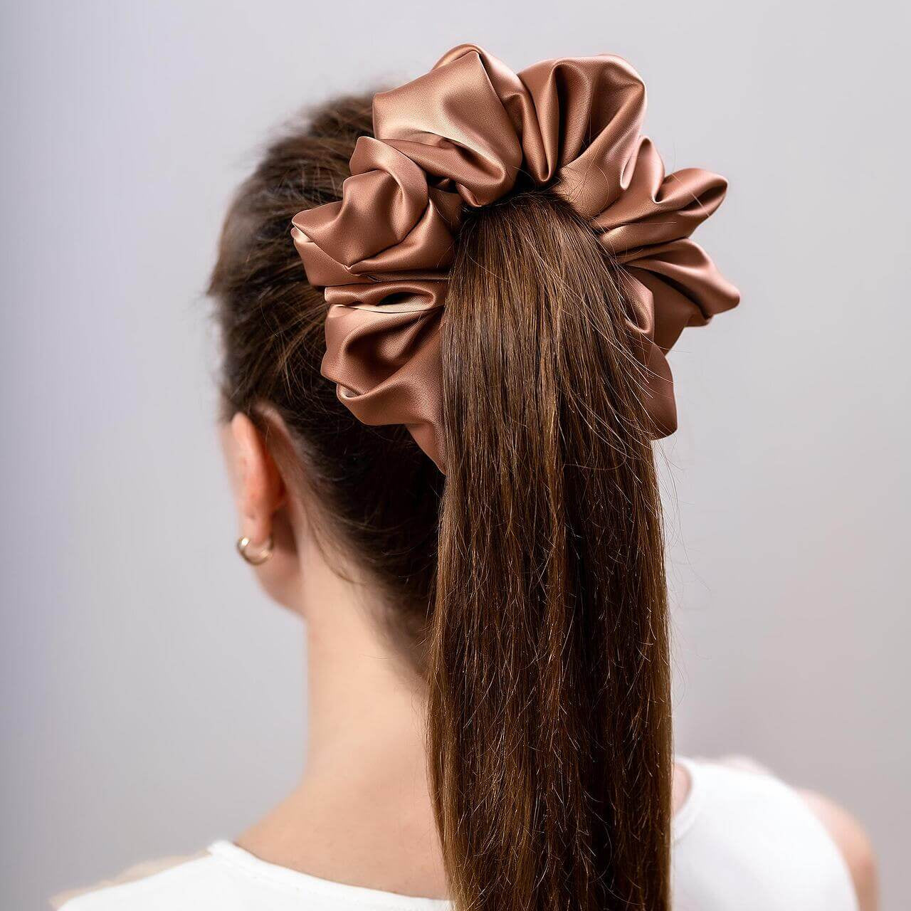 Голямо сатенено скрънчи-светло кафяво