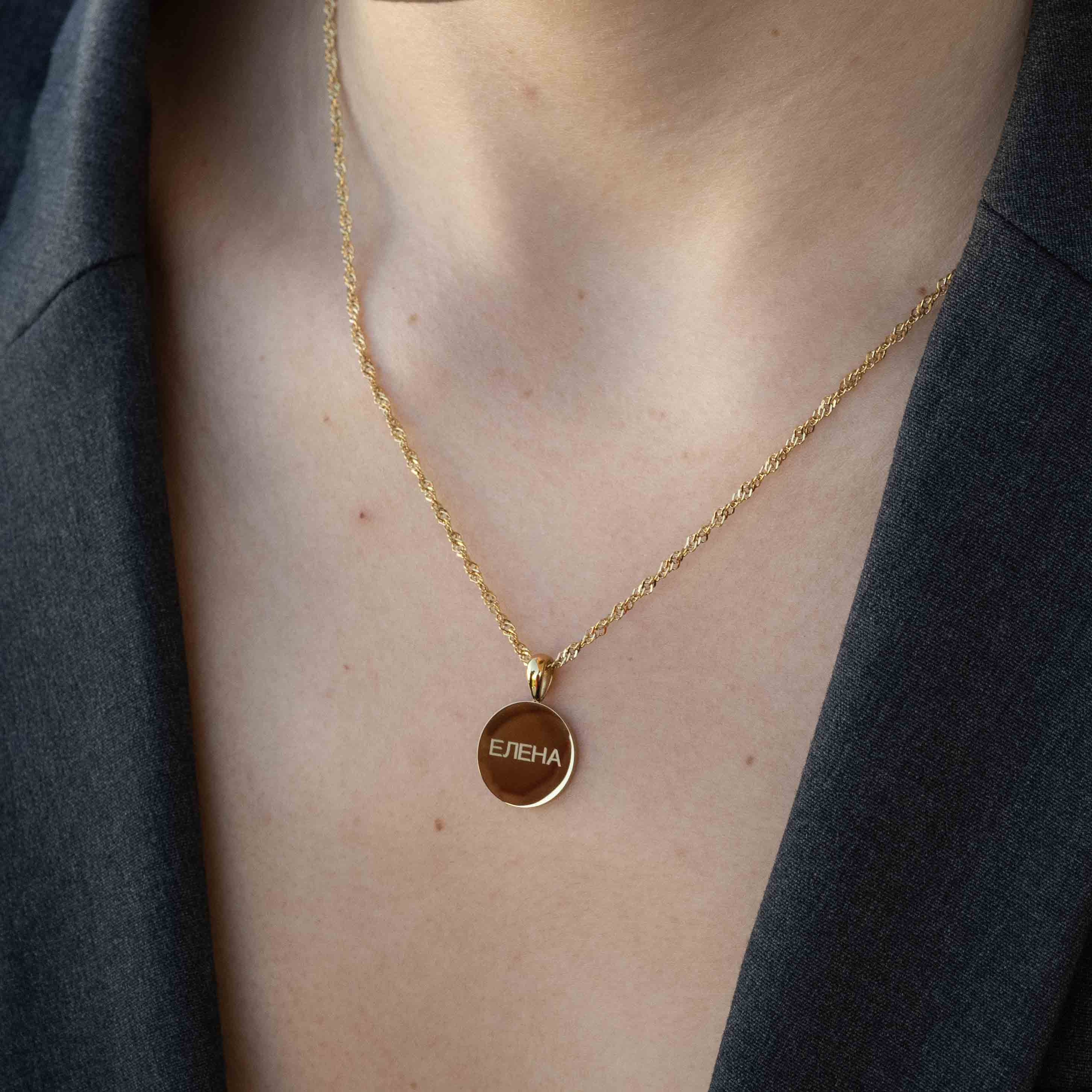 Колието Златен Кръг с 18К Позлата – Персонализирано с Гравиране, златен медальон с име, огледална повърхност