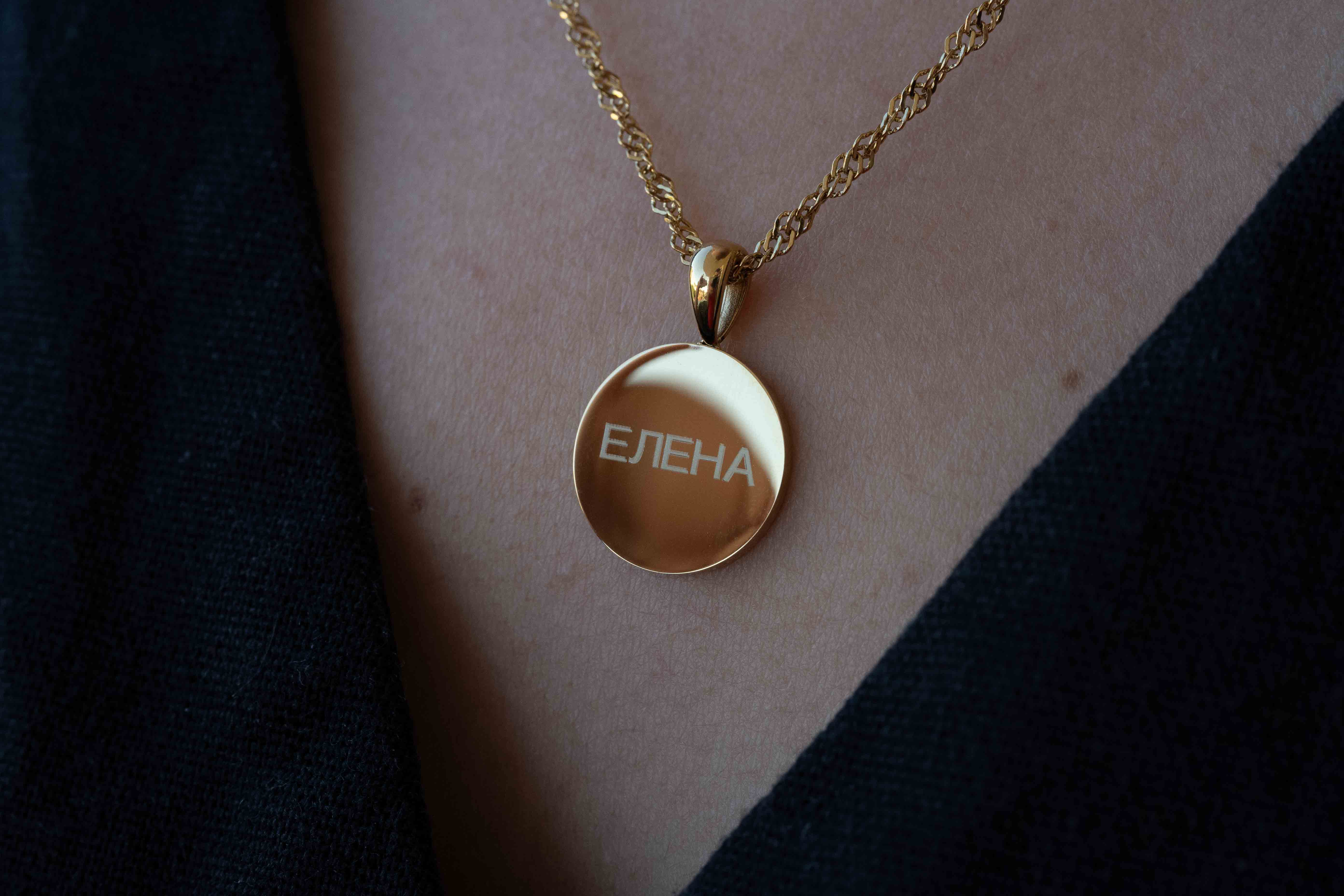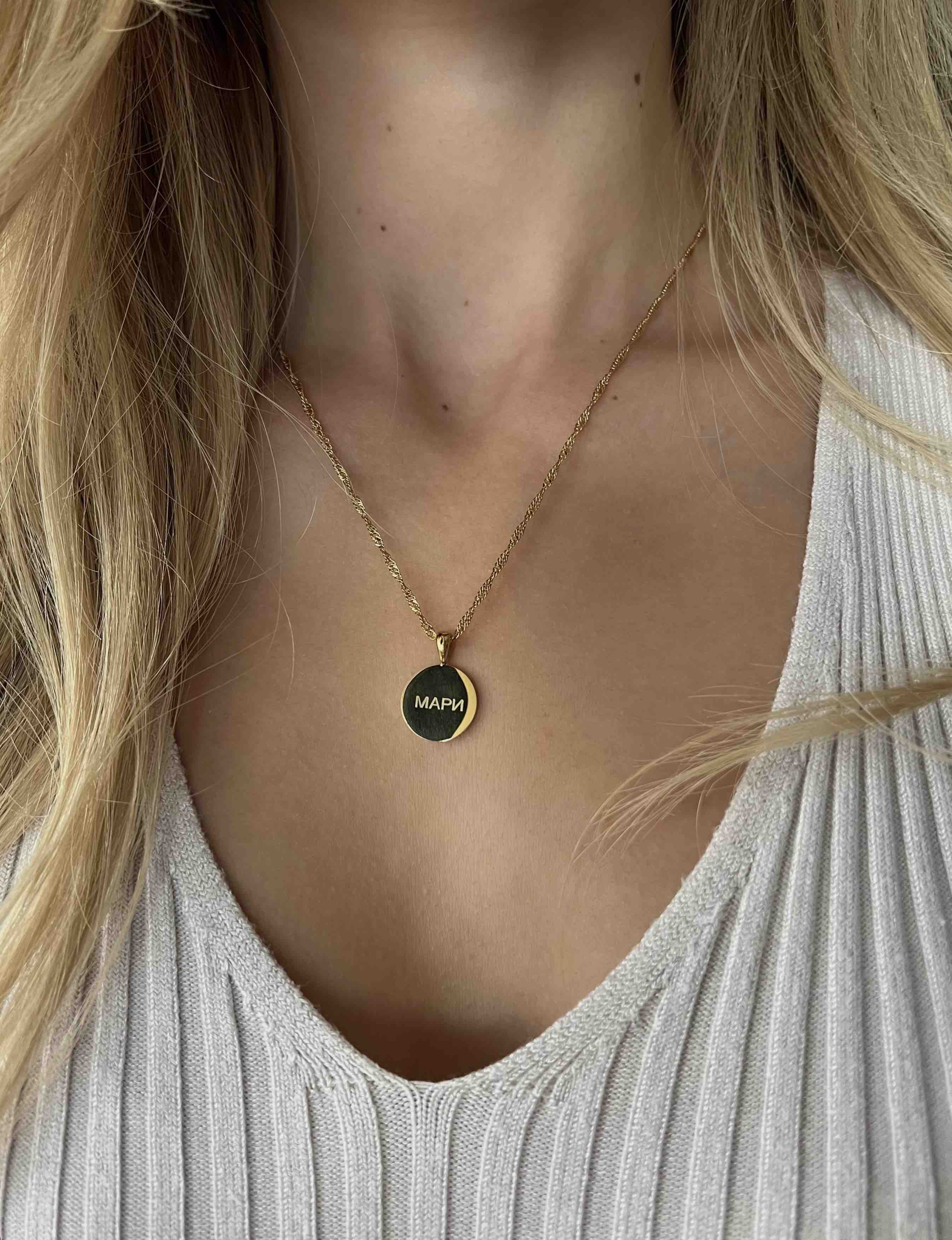 Колието Златен Кръг с 18К Позлата – Персонализирано с Гравиране, с медальон и гравирано име.