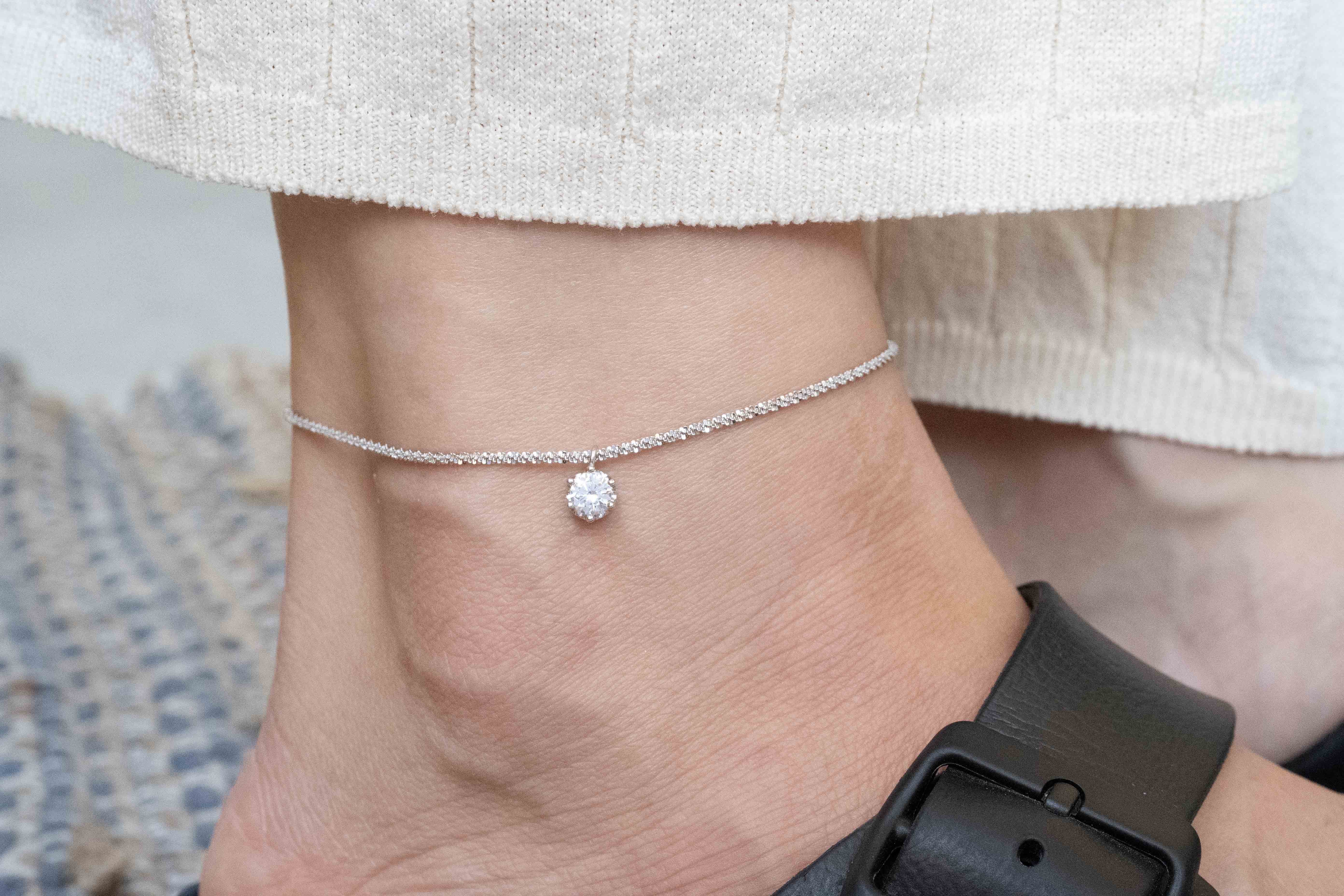 Сребърна Гривна за Глезен Блясък S925, дамска гривна на крака, бижу на пясъка.