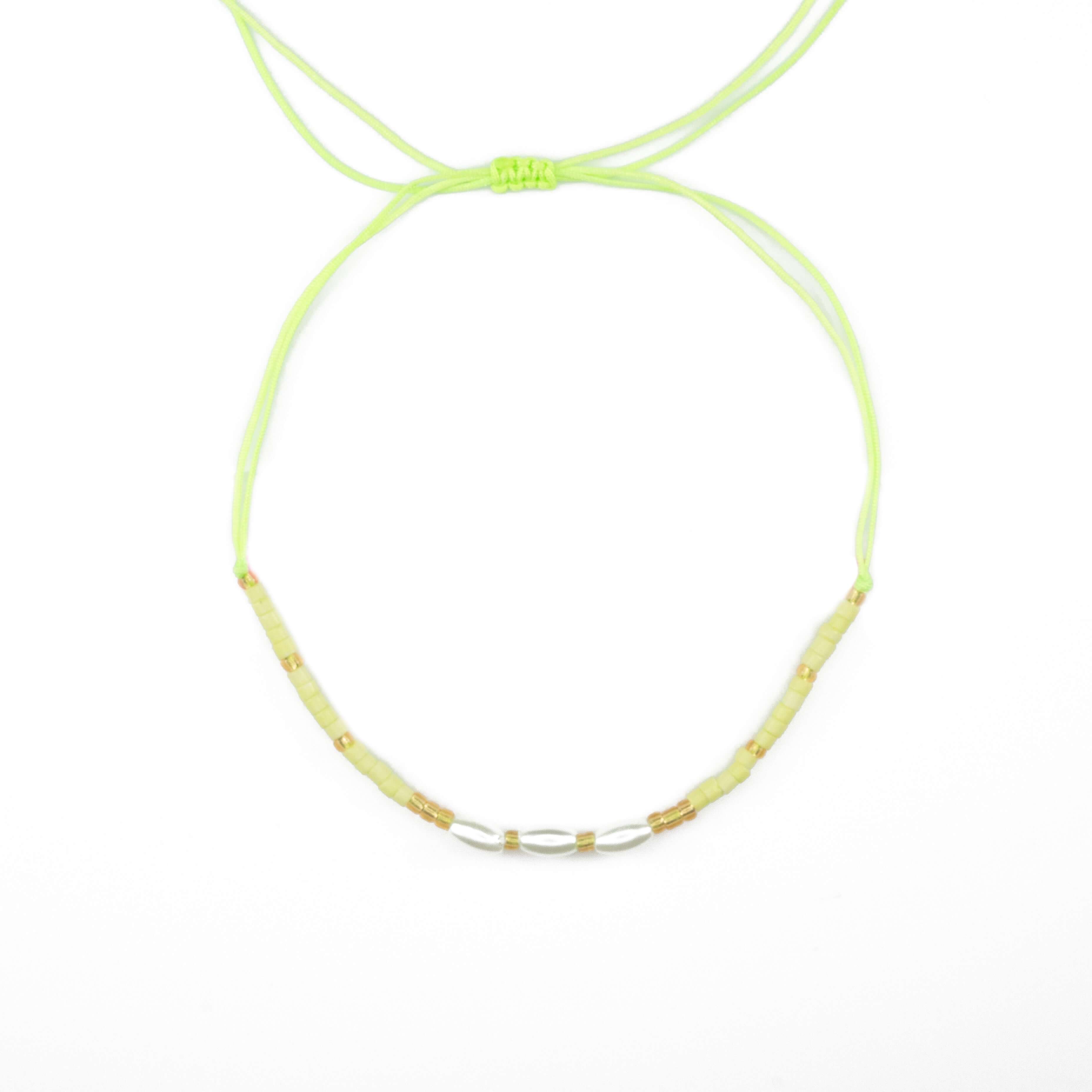 Бохо гривна за глезен с нежни перли и мъниста в свеж жълт цвят, регулируема и стилна.
