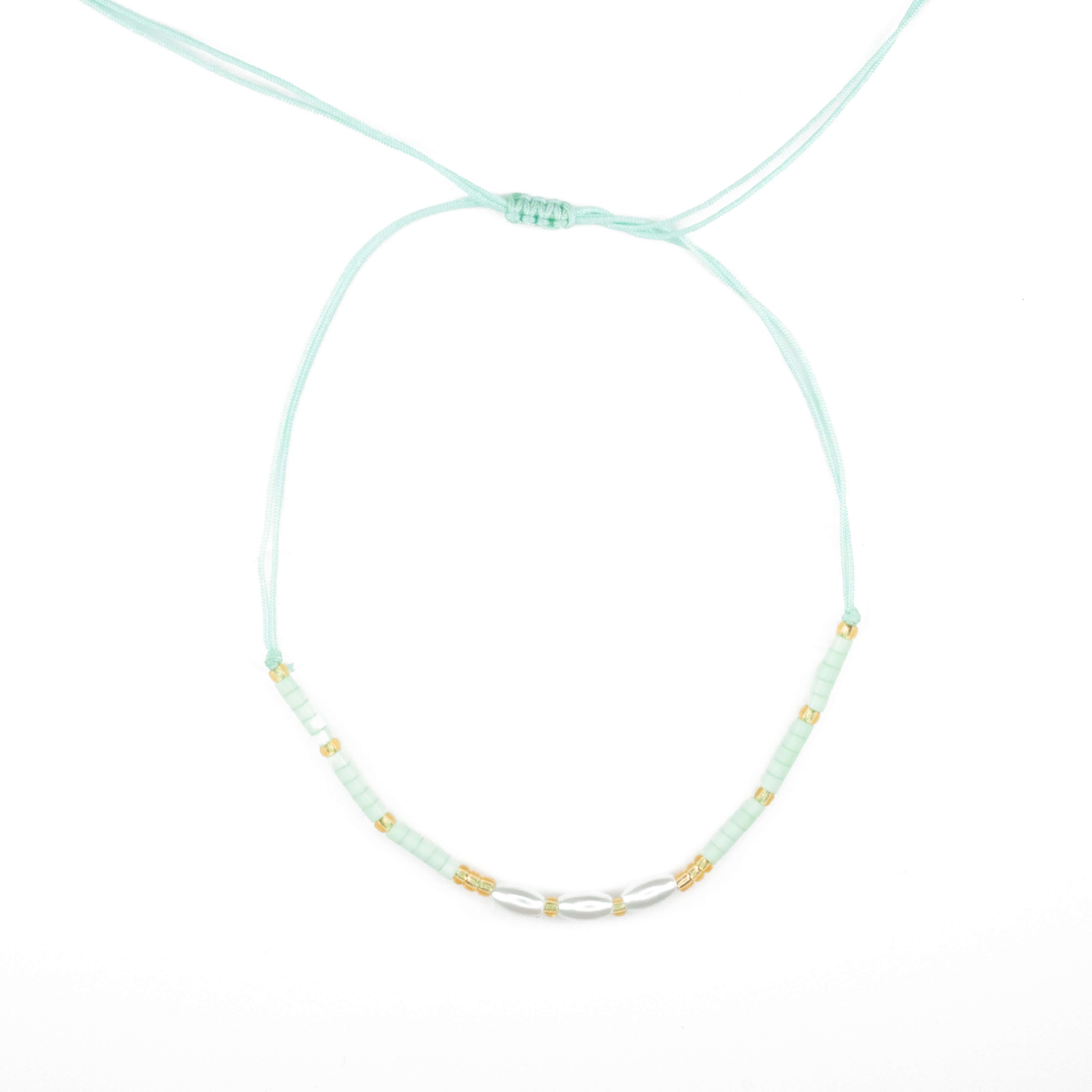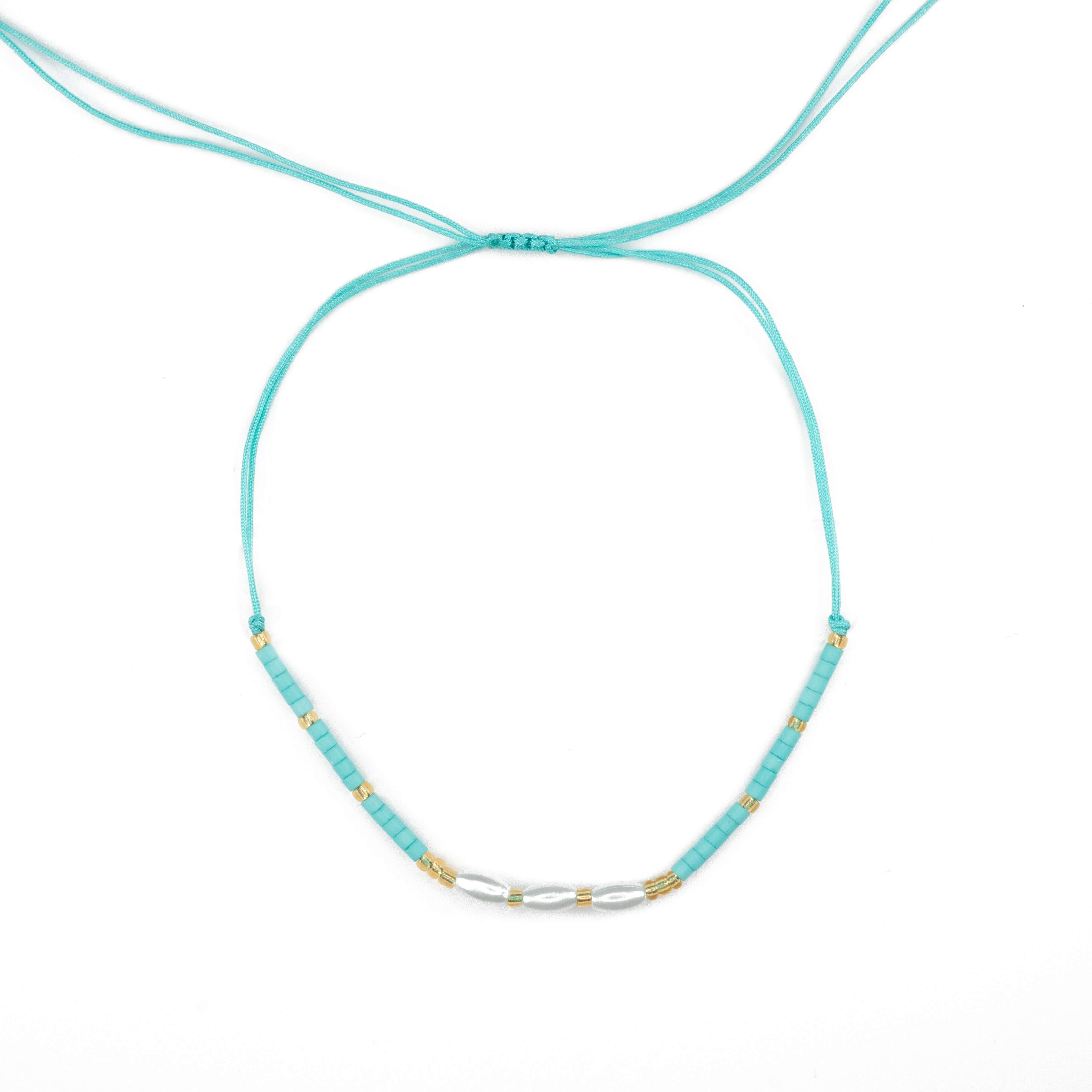 Внеси лекота и бохо дух във визията си с тази ръчно изработена гривна за глезен от конец, украсена с три нежни перлички и фини мъниста. Ефирна, стилна и напълно регулируема, гривната се адаптира перфектно към всеки глезен, осигурявайки комфорт и визуален акцент както на плажа, така и в града.