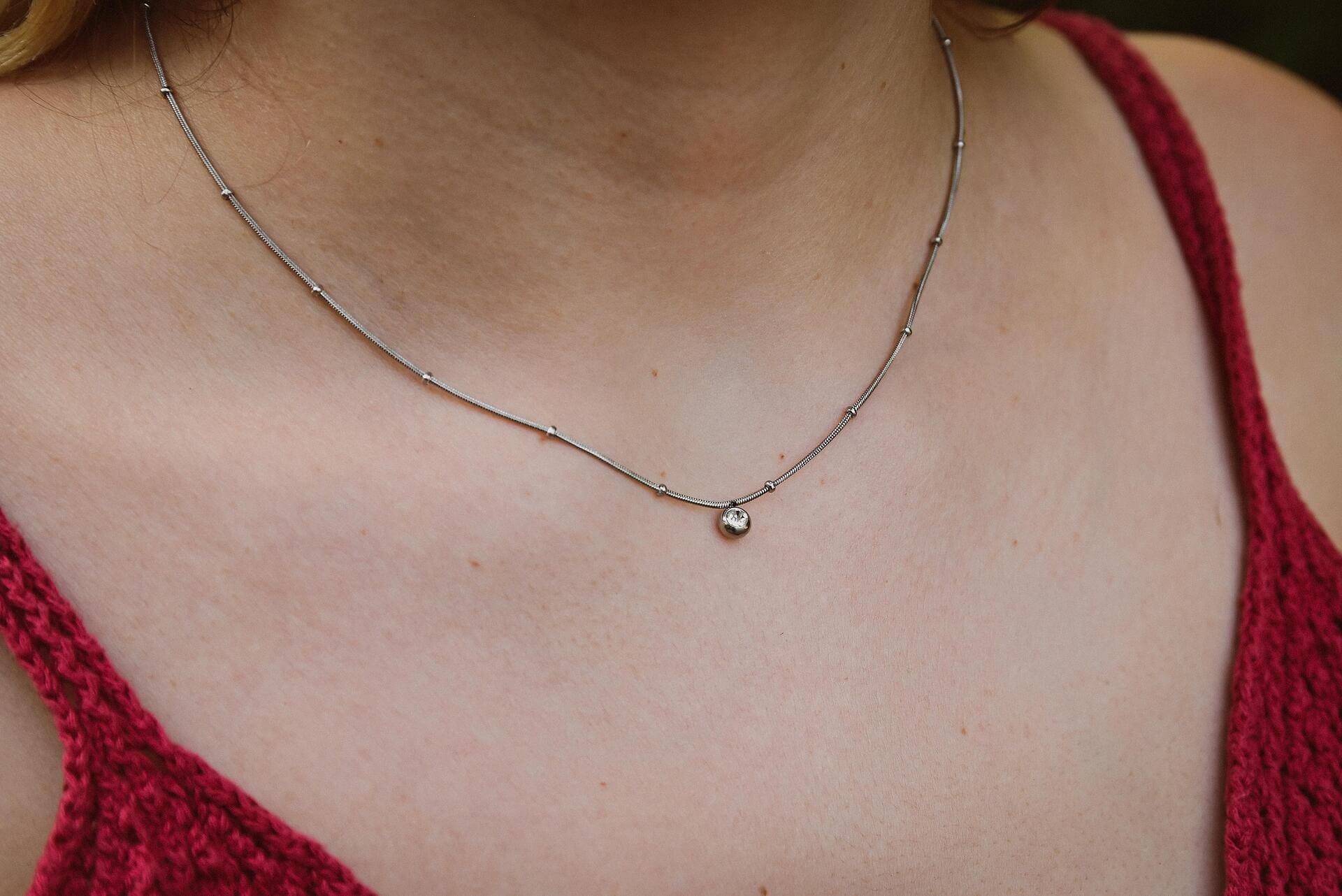 Сребристо Колие Amore с Кристал
