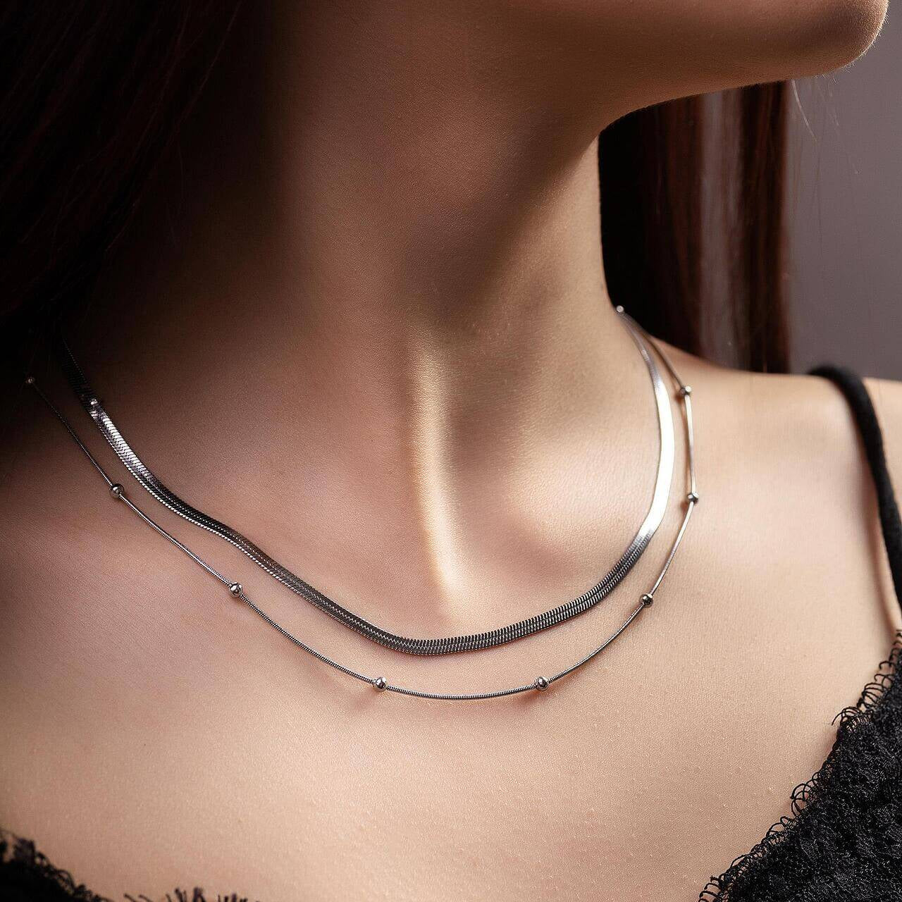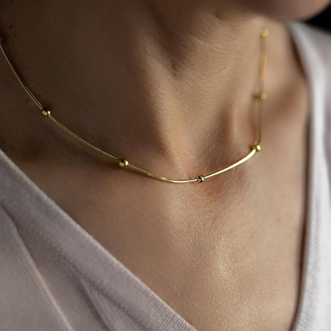 Двойно Kолие Топчета и Змийска Плетка с 18К Златно Покритие