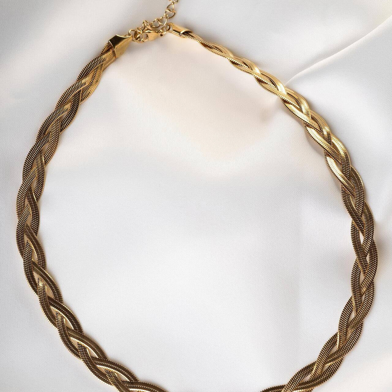 Преплетено златисто колие змийска плетка 18к златно покритие