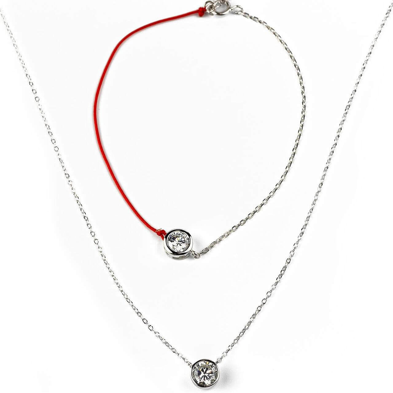Сребърен комплект с червено конче - колие + мека гривна S925 Silver