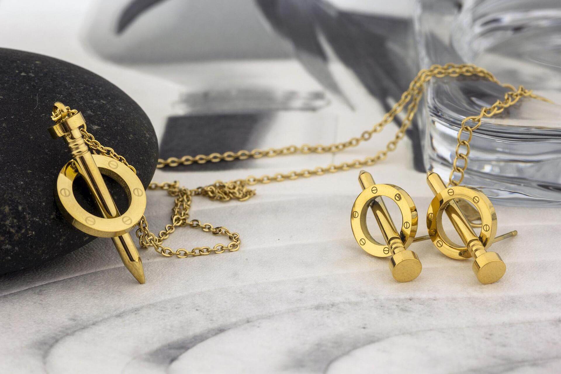 • Комплект от колие и обеци, които съчетават последните модни тенденции и добавят перфектния завършек към вашата визия.
