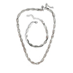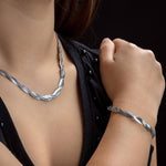 Сребрист Комплект Змийска Плетка- Колие+ Мека Гривна