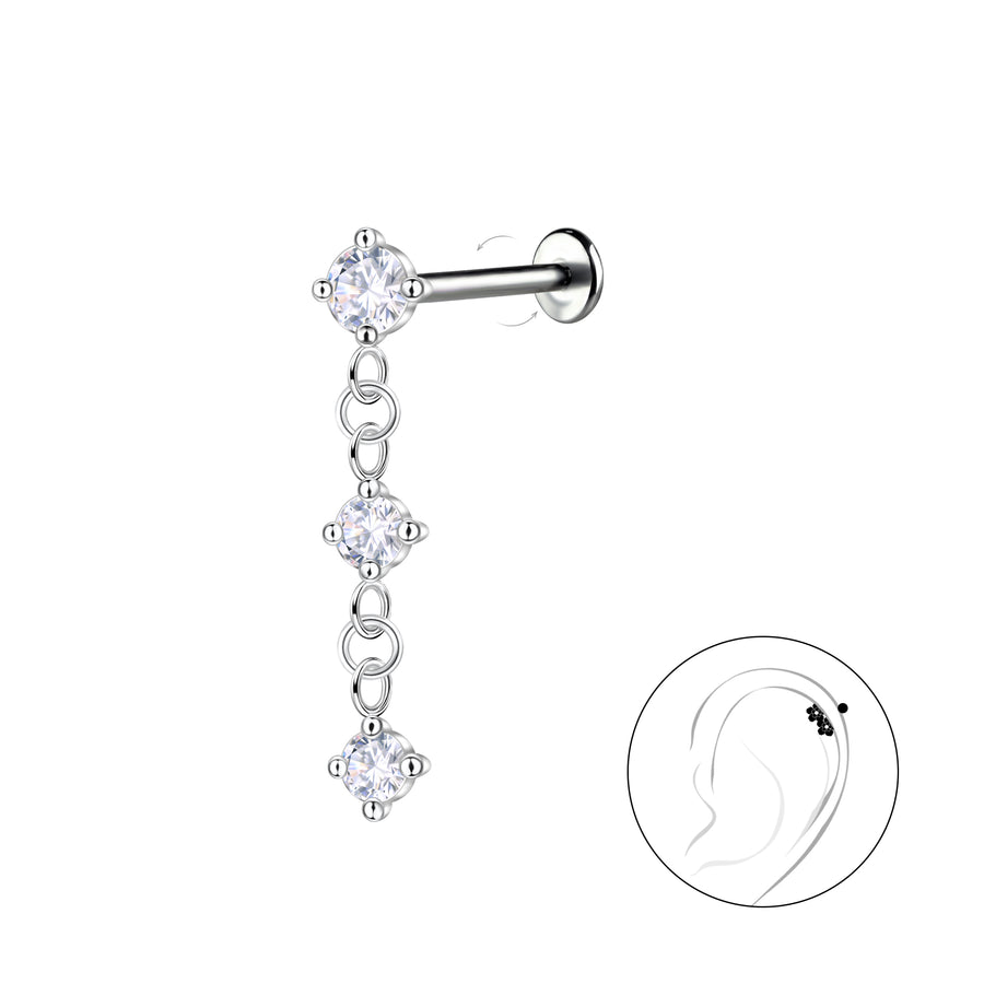 Сребърни Обеци Spark Link S925 с кристал и цирконий, идеален пиърсинг за ухо.