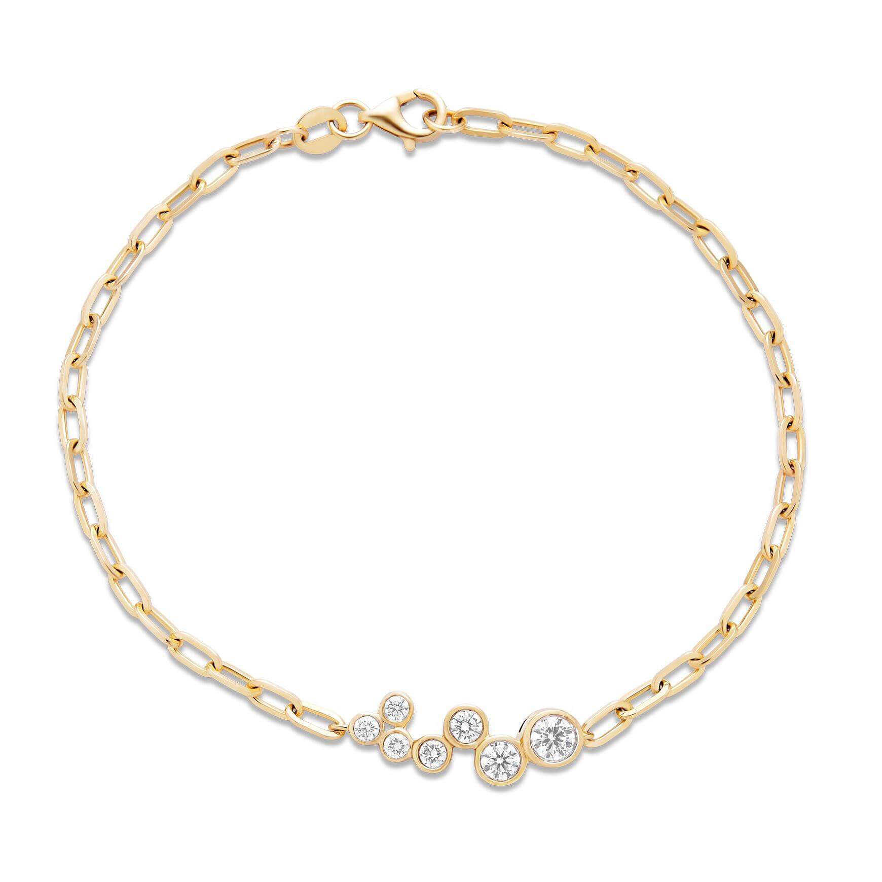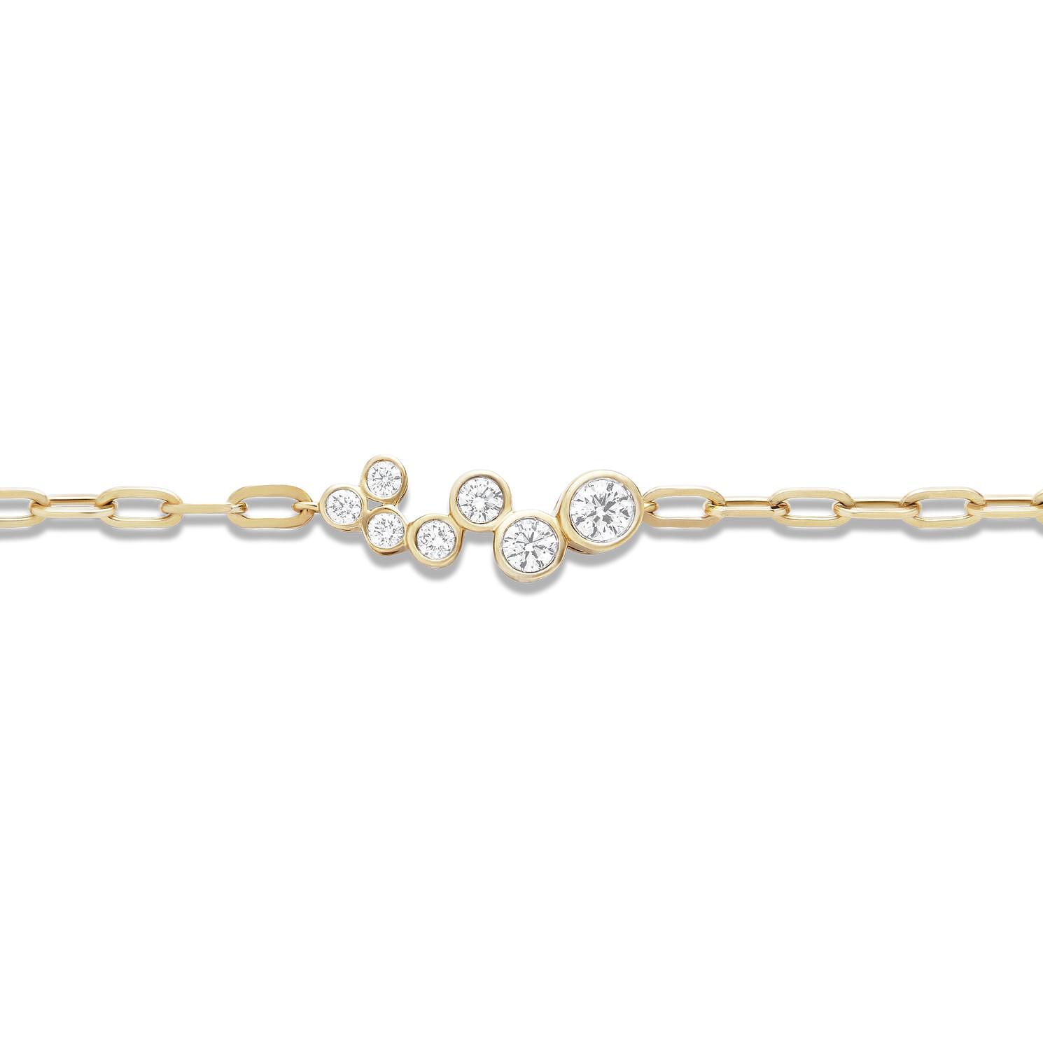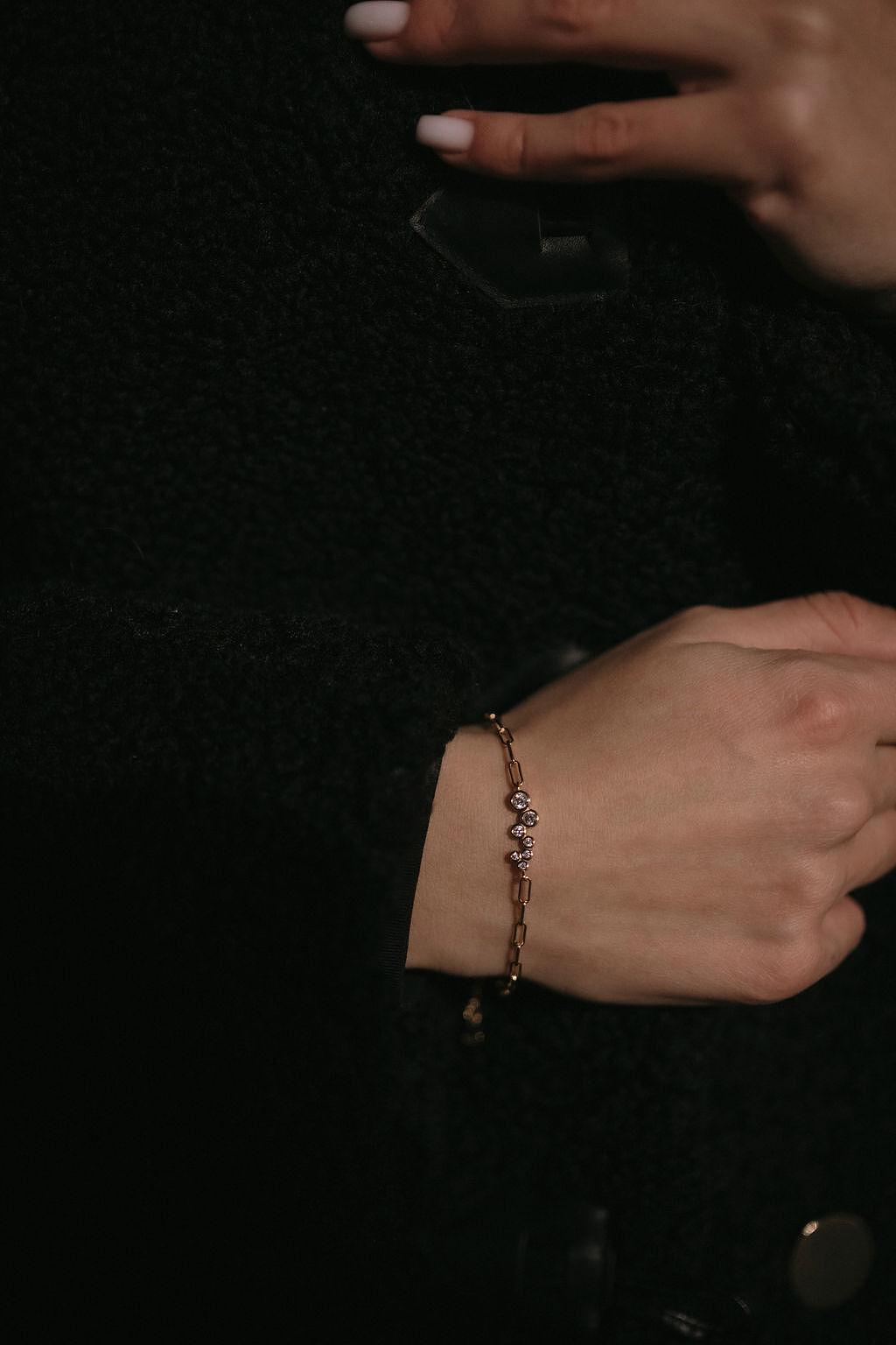 Нежна гривна от сребро с изискано златно покритие 18К, която съчетава елегантност и блясък. Гривната е с финна верижка, изработена с внимание към всеки детайл, и е украсена с няколко блестящи камъка циркон 5А качество. Камъните са майсторски шлифовани, за да улавят светлината и да придават на гривната допълнителен лукс