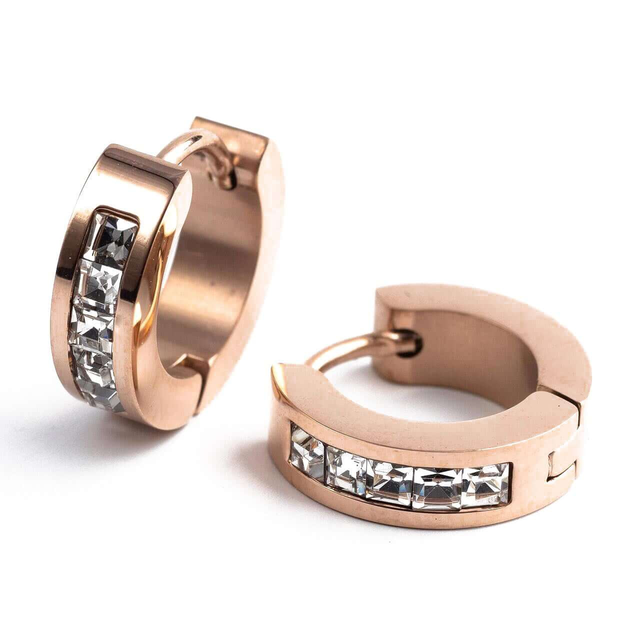 Малки обеци с кристали в розово злато