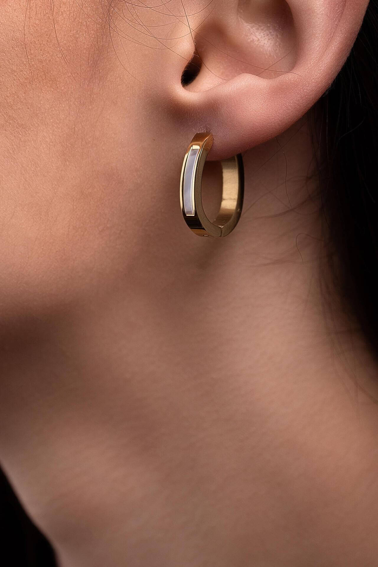 Минималистични златисти обеци седеф