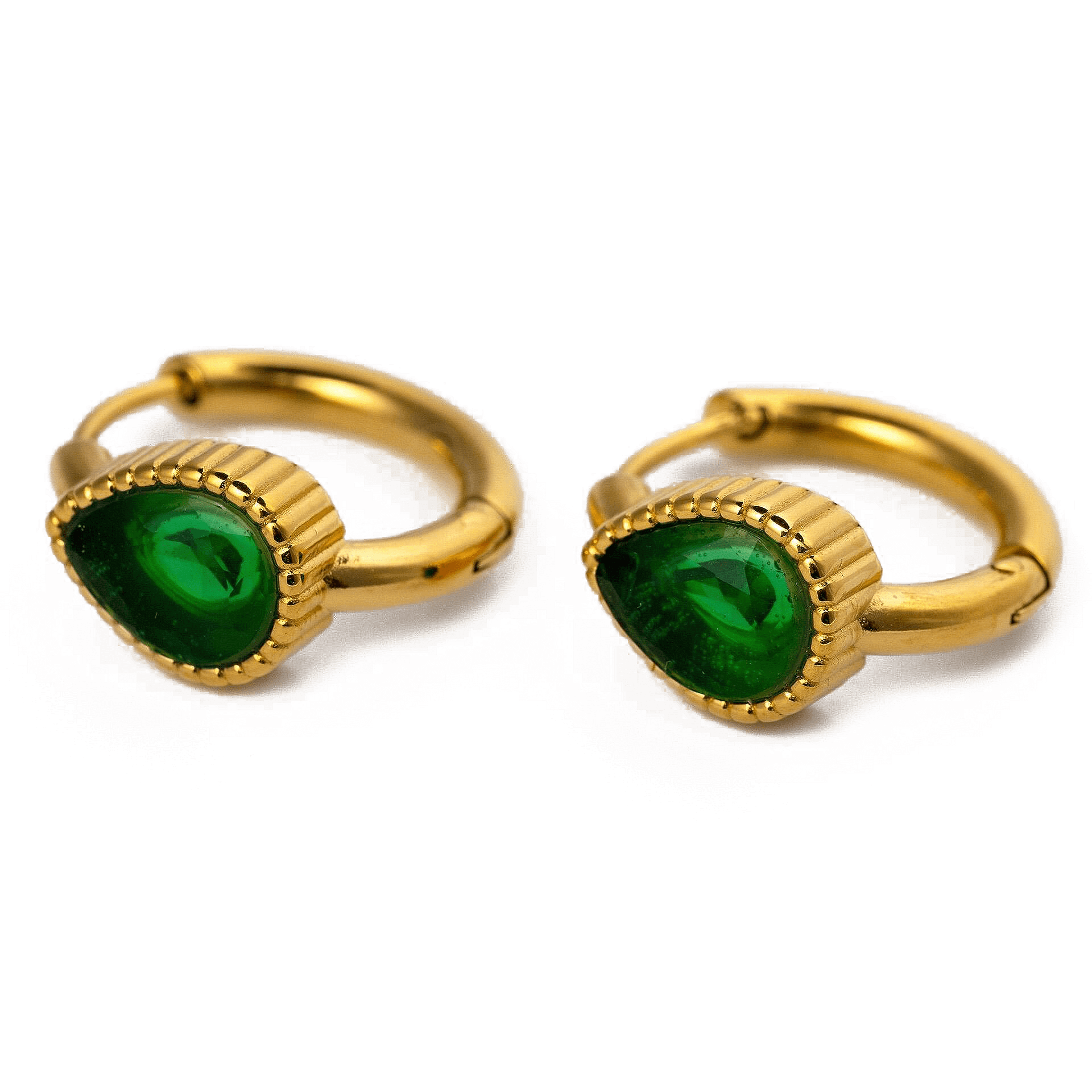 Златисти обеци с зелен кристал, стилни и елегантни, идеални за всеки повод.