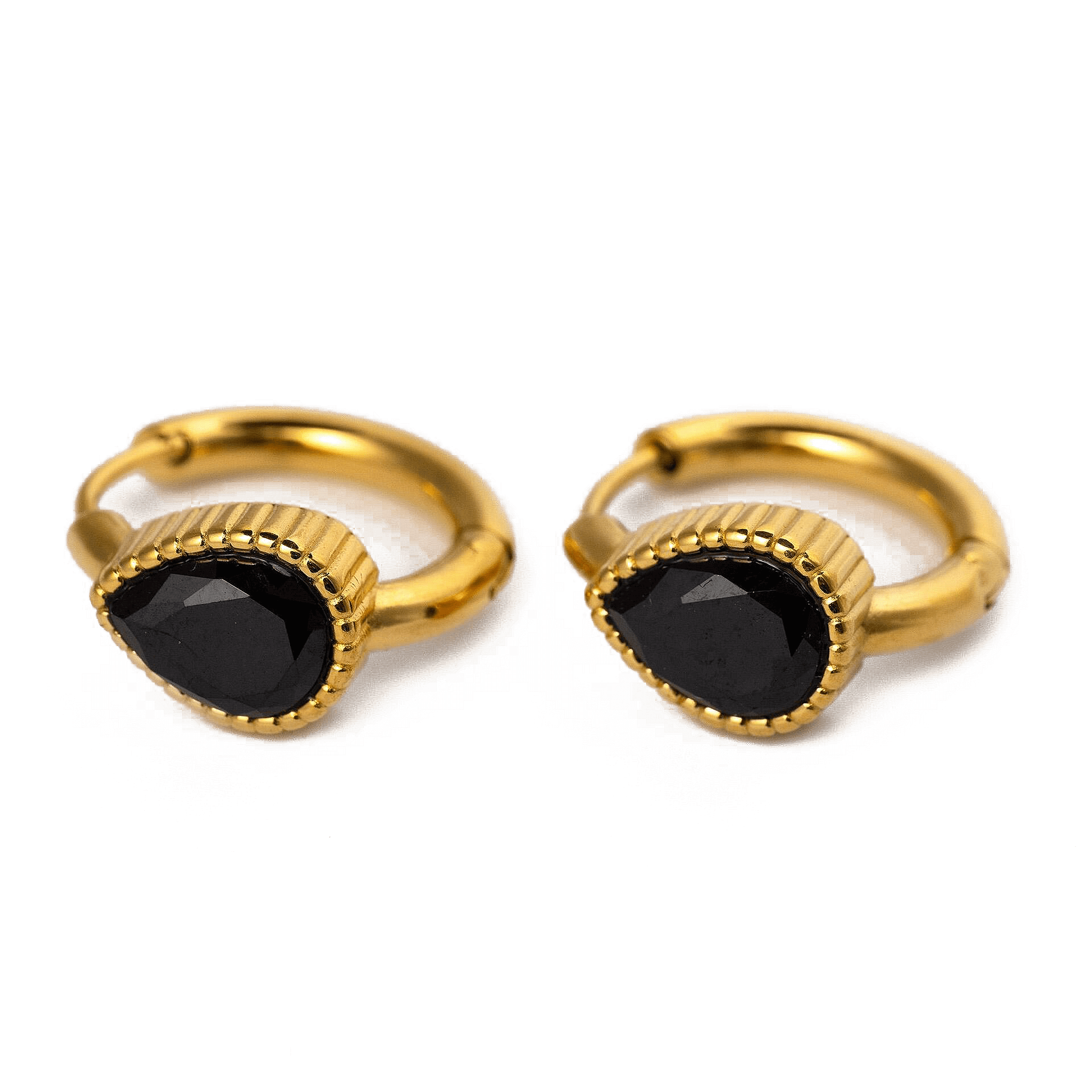Златисти обеци с черни кристали в триъгълна форма, елегантен дизайн за стилно допълнение.