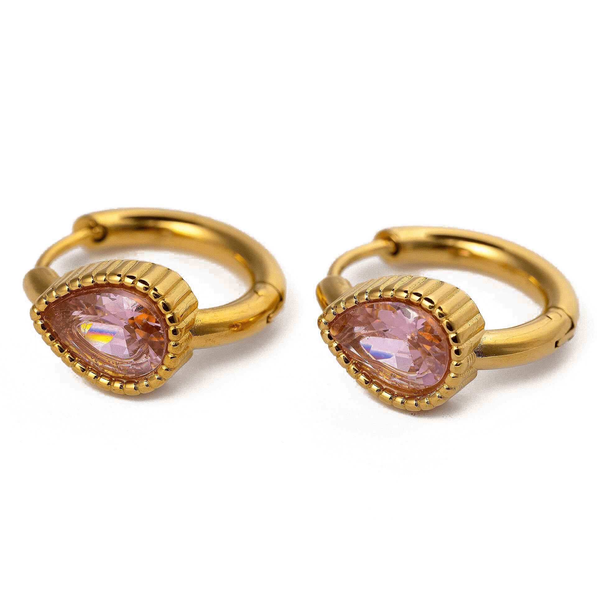 Златисти обеци с розови кристали, елегантен аксесоар за стилна визия.