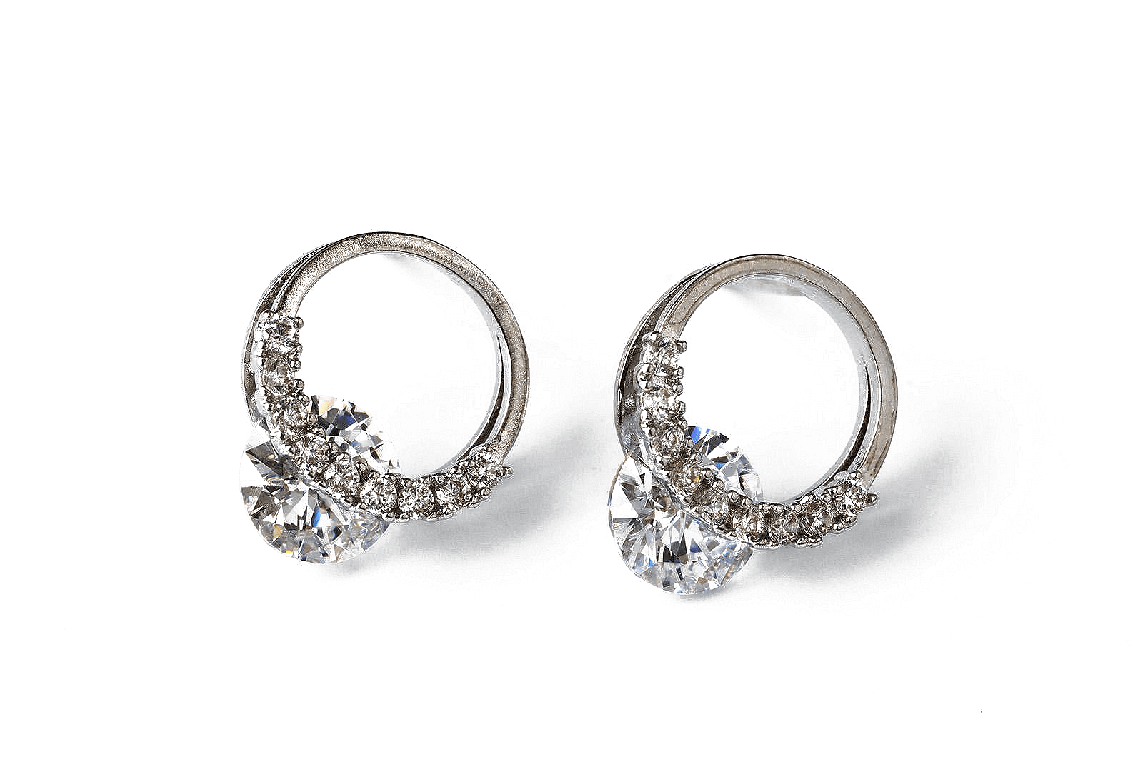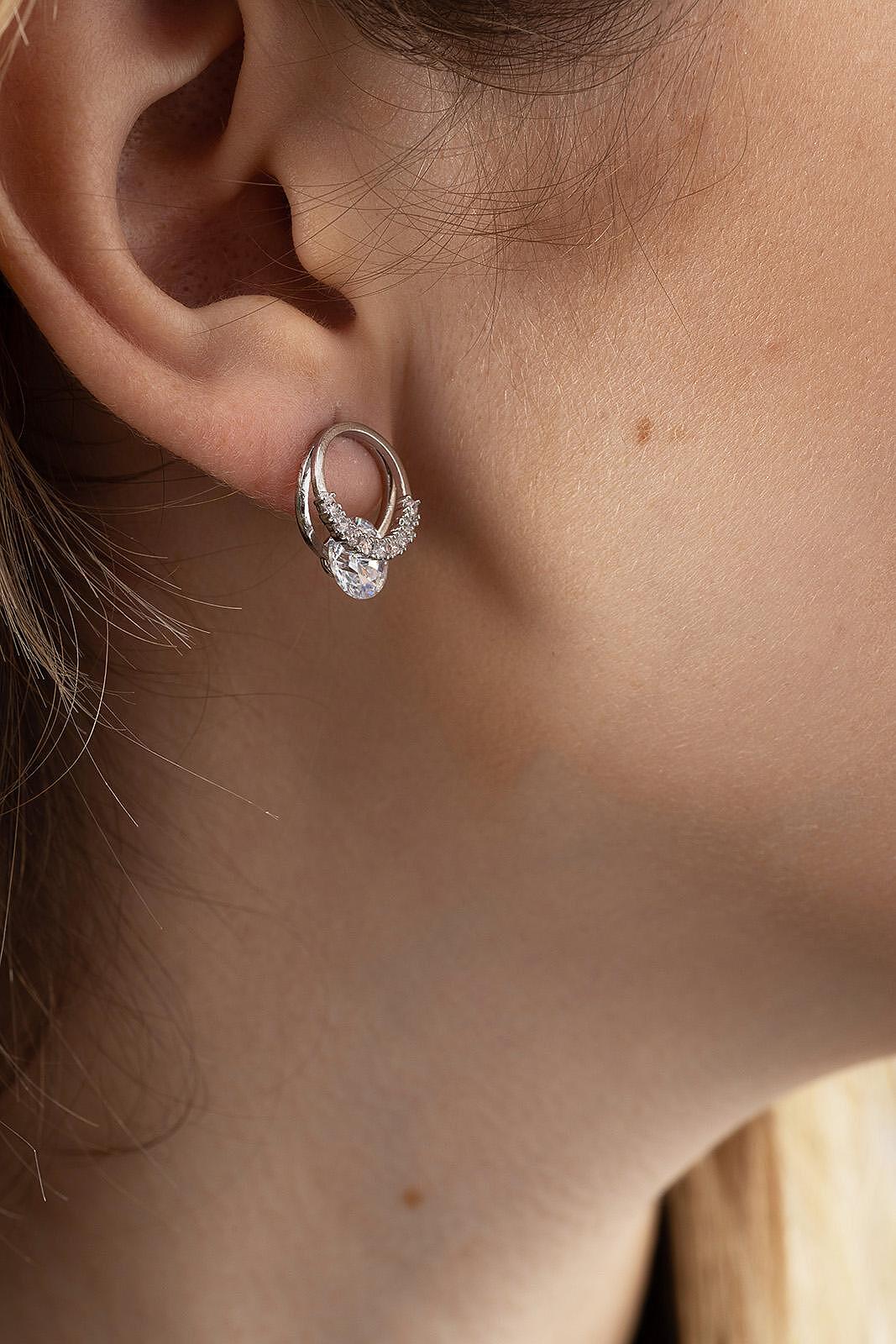 Общ поглед на блестящи обеци с камъче, изработени от висококачествена медицинска стомана.