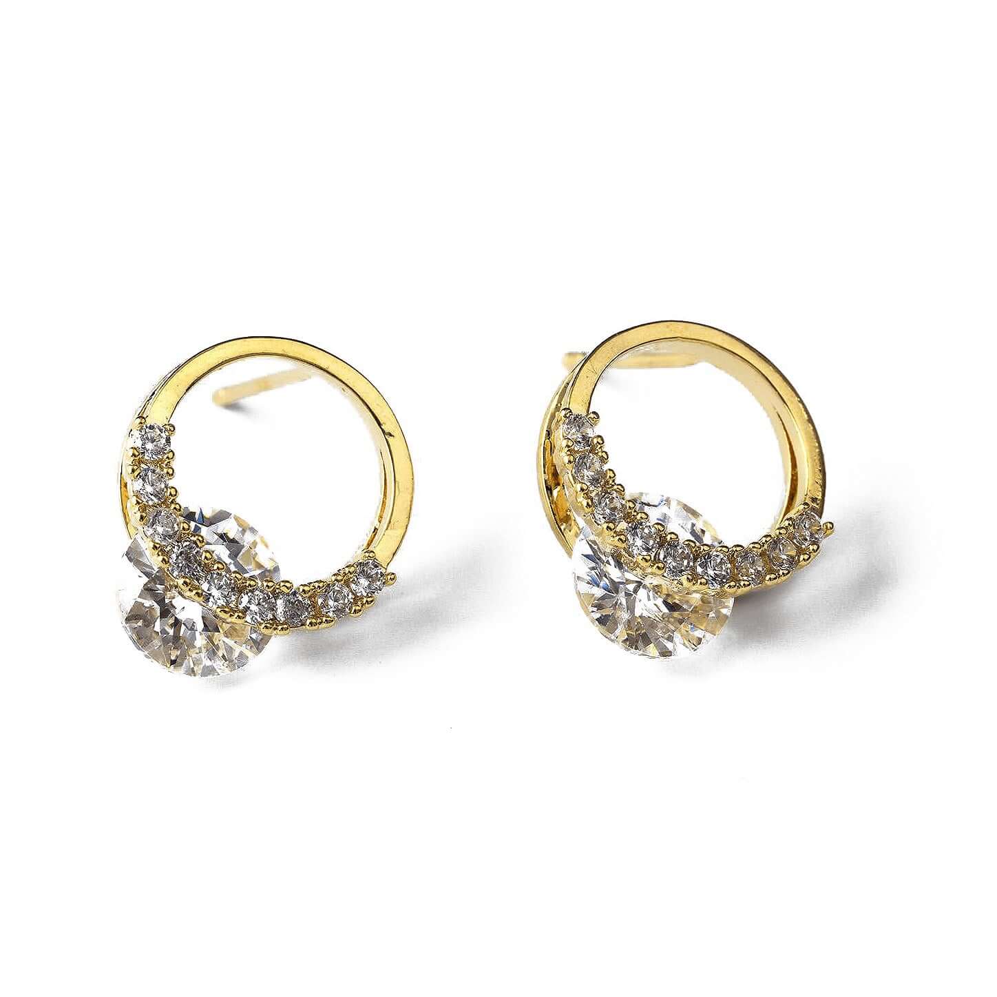 Кръгли обеци с блестящ камък в златист цвят, изработени от медицинска стомана.