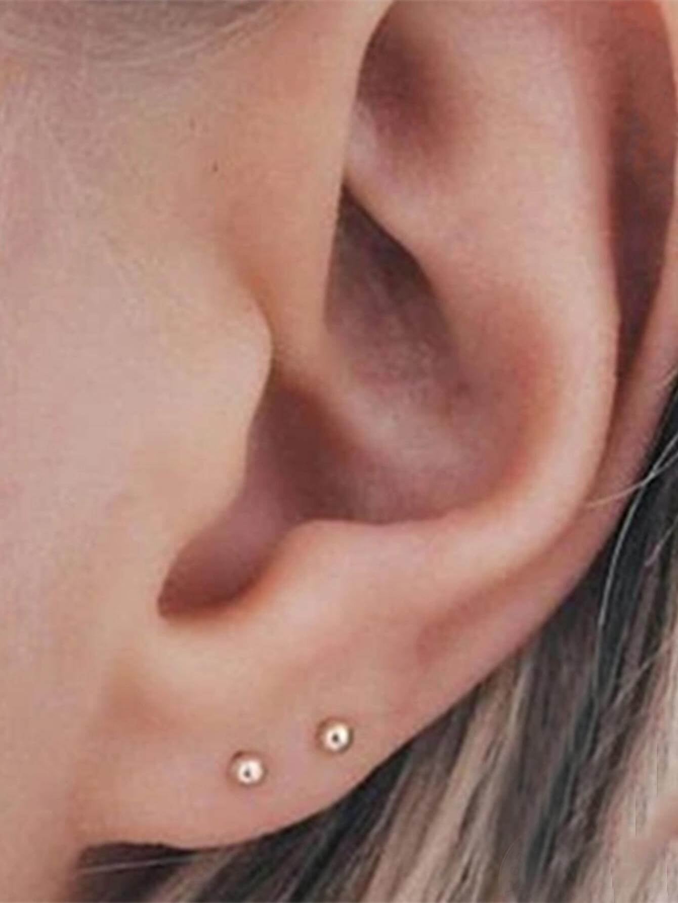 Снимка на обеци Golden Duo S925 с 18K златно покритие, носени в две пиърсинг дупки.