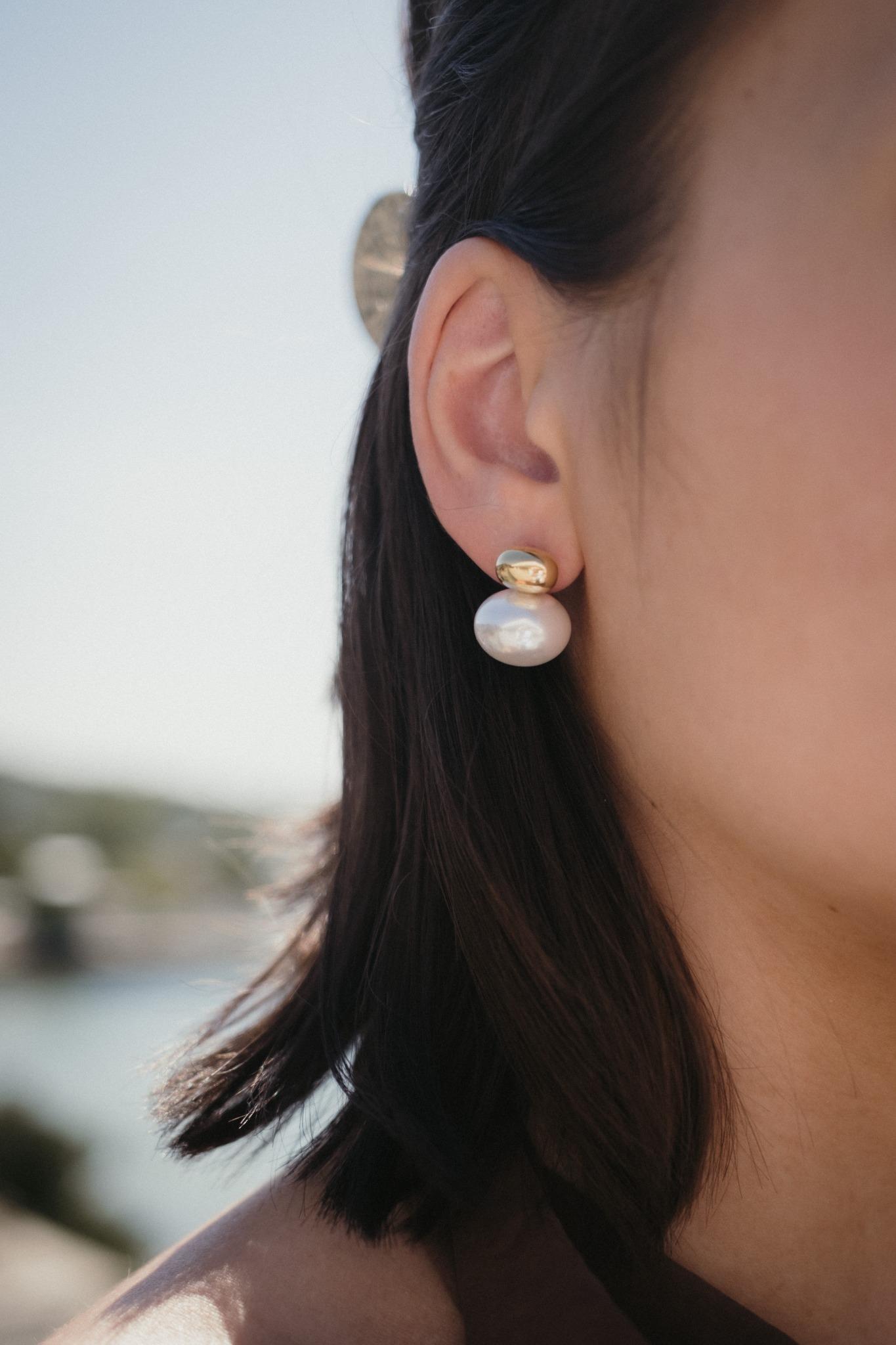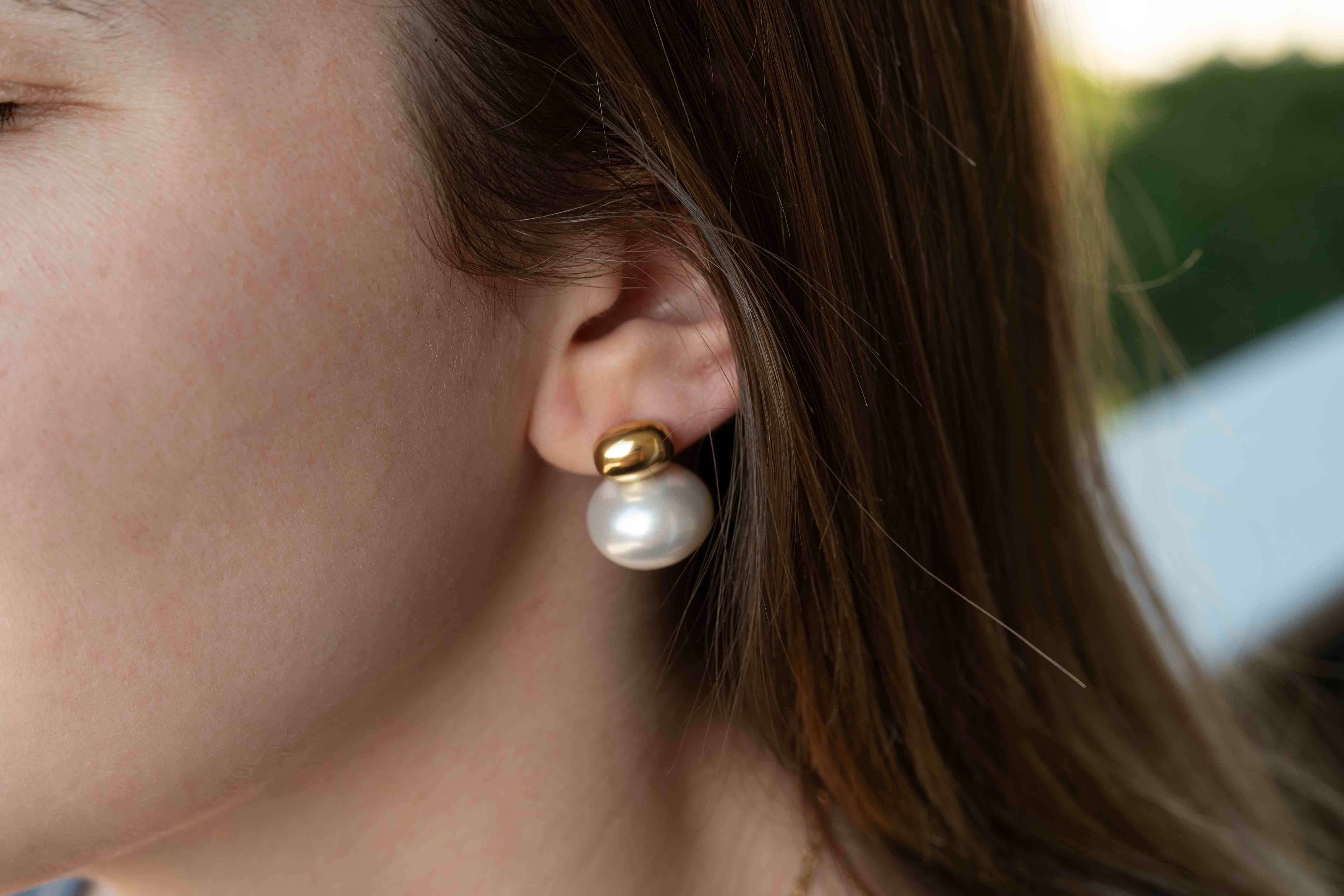 Обeци Vintage Перла с 18К Позлата, златисти обеци с перли, модерни обеци в ухото.