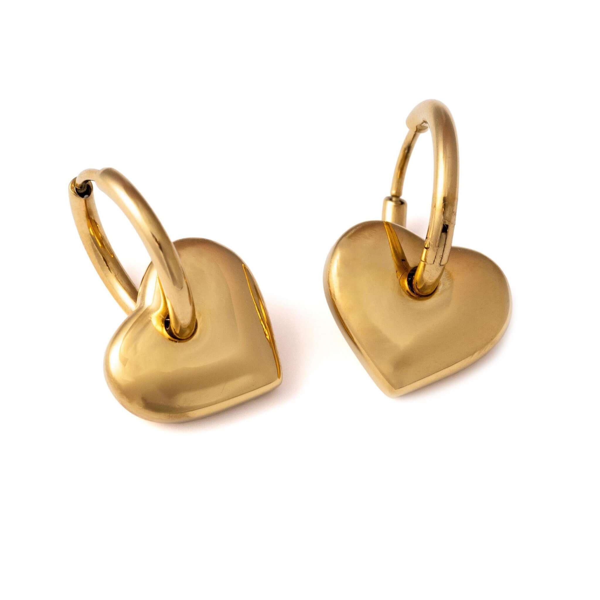 Златисти обеци "Любов" с 18K златно покритие, в изящен сърцевиден дизайн.