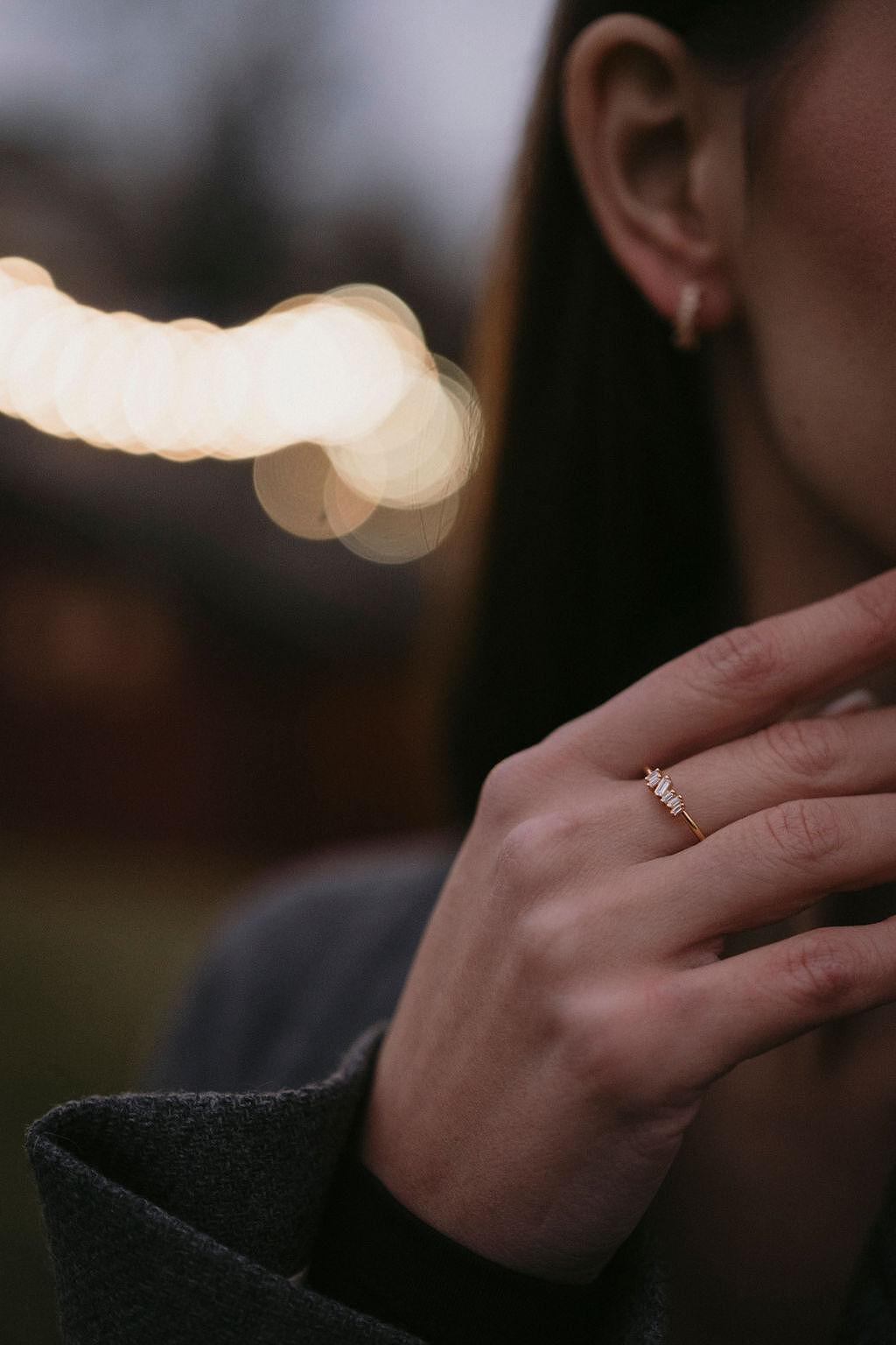 Изключително важно е да се уверите, че измервате правилно по ръба на вътрешния диаметър на пръстена (както е показано на снимката по-долу). Ако нямате линийка, може да използвате шивашки метър или шублер.