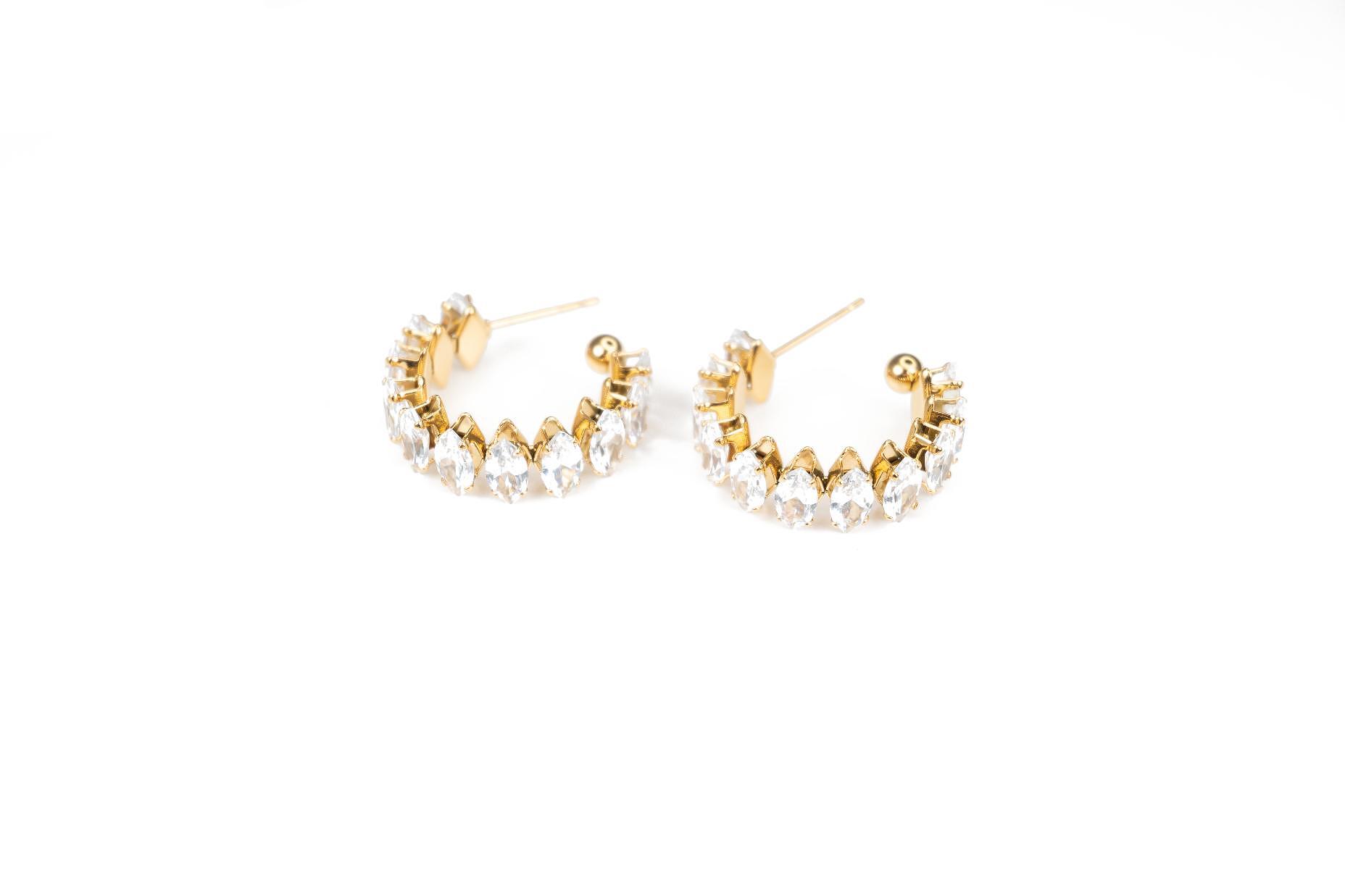 Добавете изискан блясък към визията си с тези елегантни обеци с камъни, които сияят с невероятен блясък и изтънченост. Изработени от висококачествена медицинска стомана, те са устойчиви на потъмняване и хипоалергенни, осигурявайки комфорт при носене през целия ден.