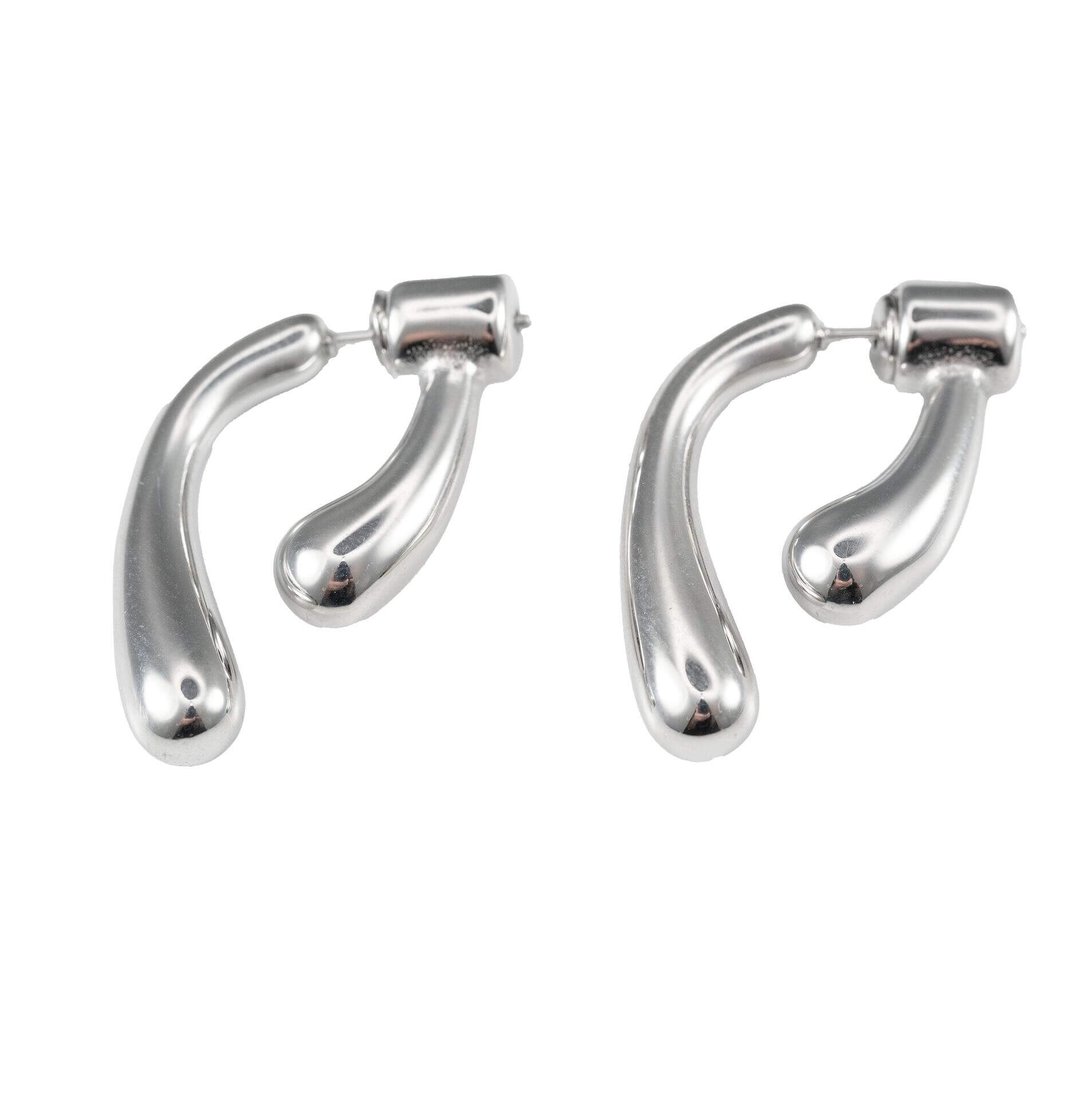 Сребристи обеци Течна Капка с 18К златно покритие, хипоалергенни, водоустойчиви, съвременен дизайн.