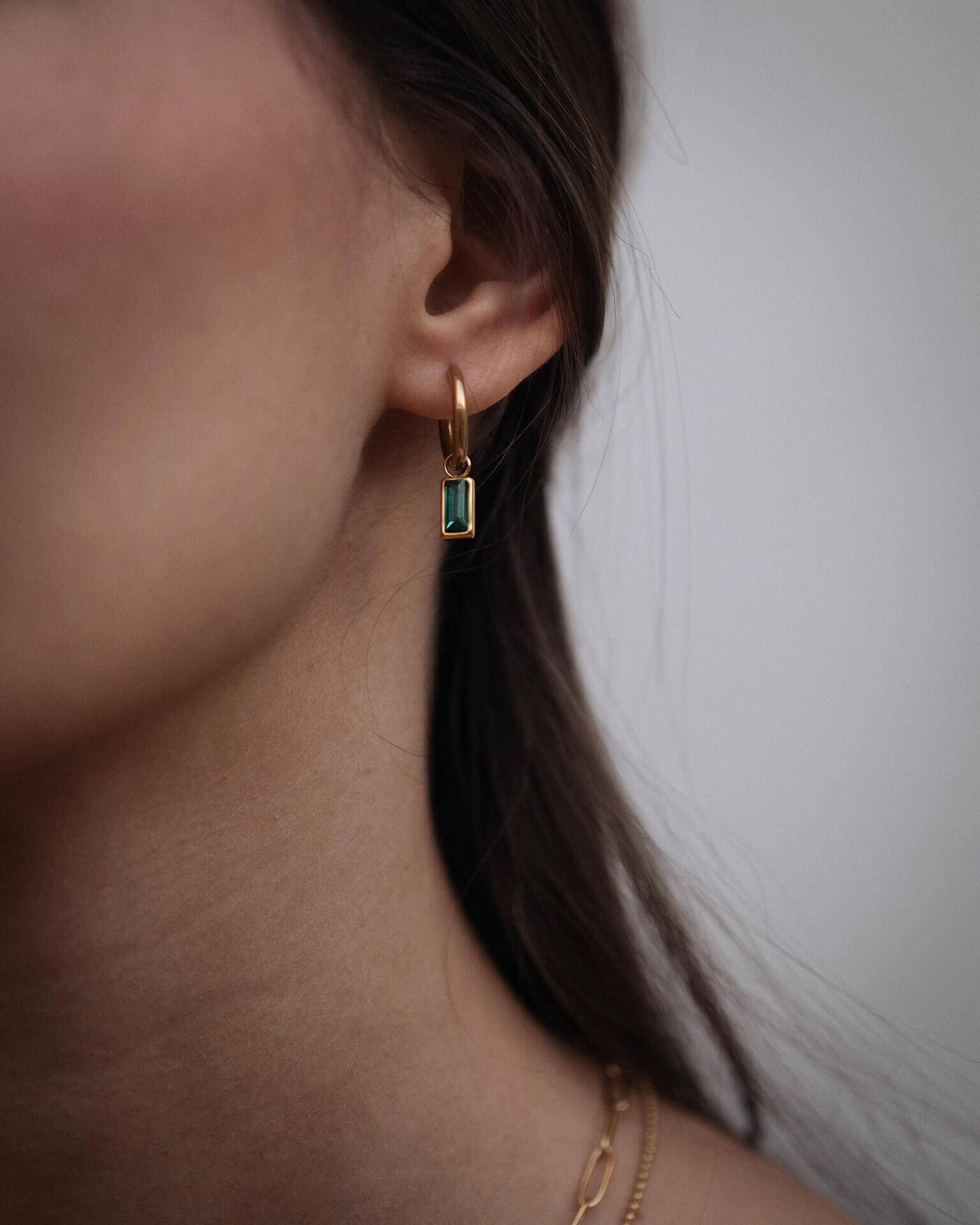 Златисти обеци със зелен емерълд, 14K златно покритие, стилна визия и елегантен дизайн.