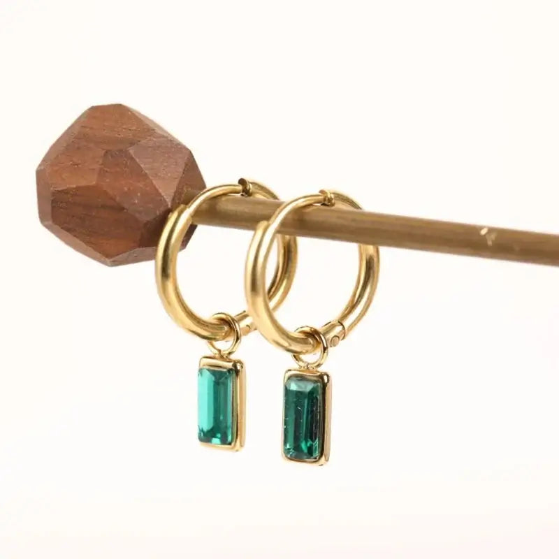 Златисти обеци с зелен емерълд и 14K златно покритие, елегантен акцент за специални поводи.