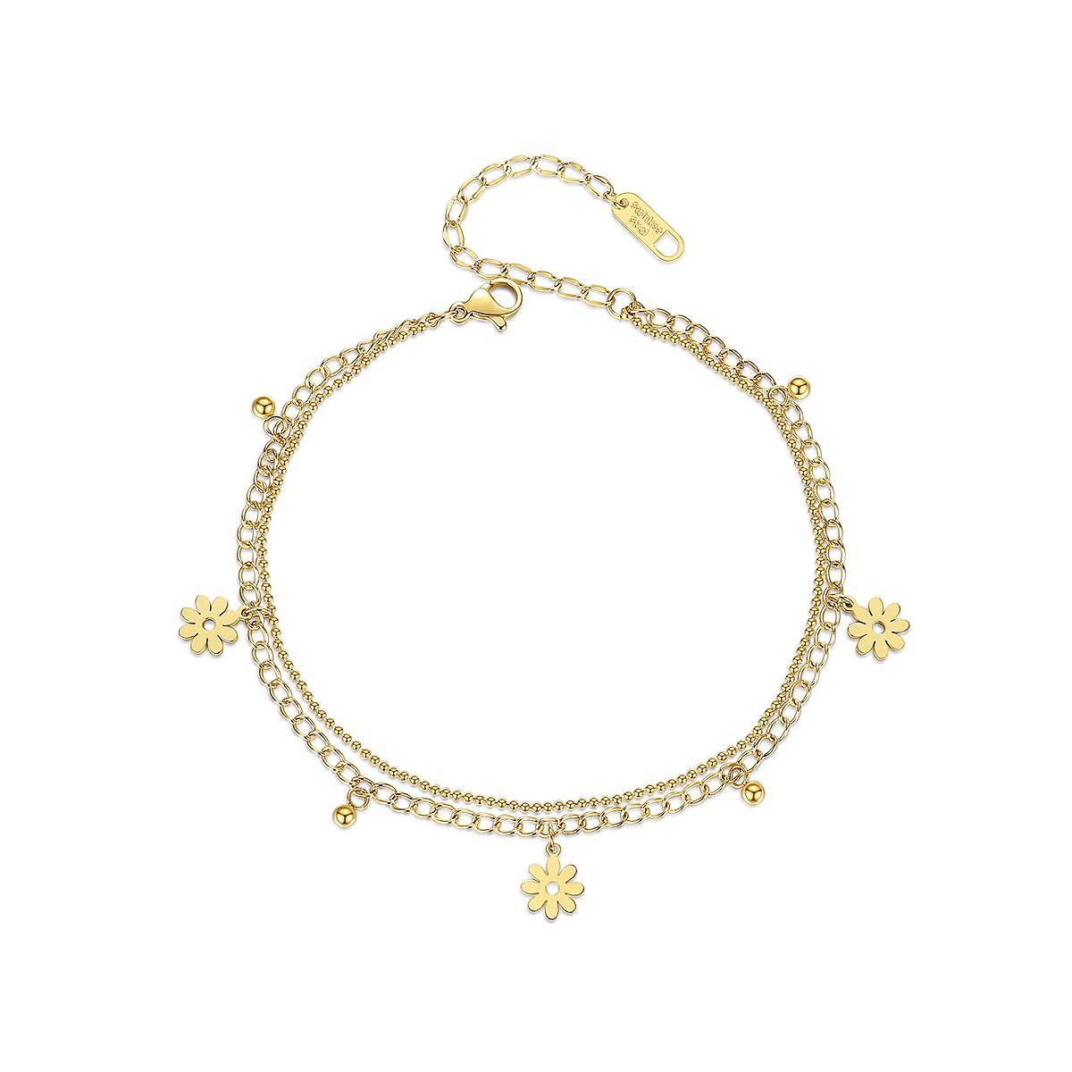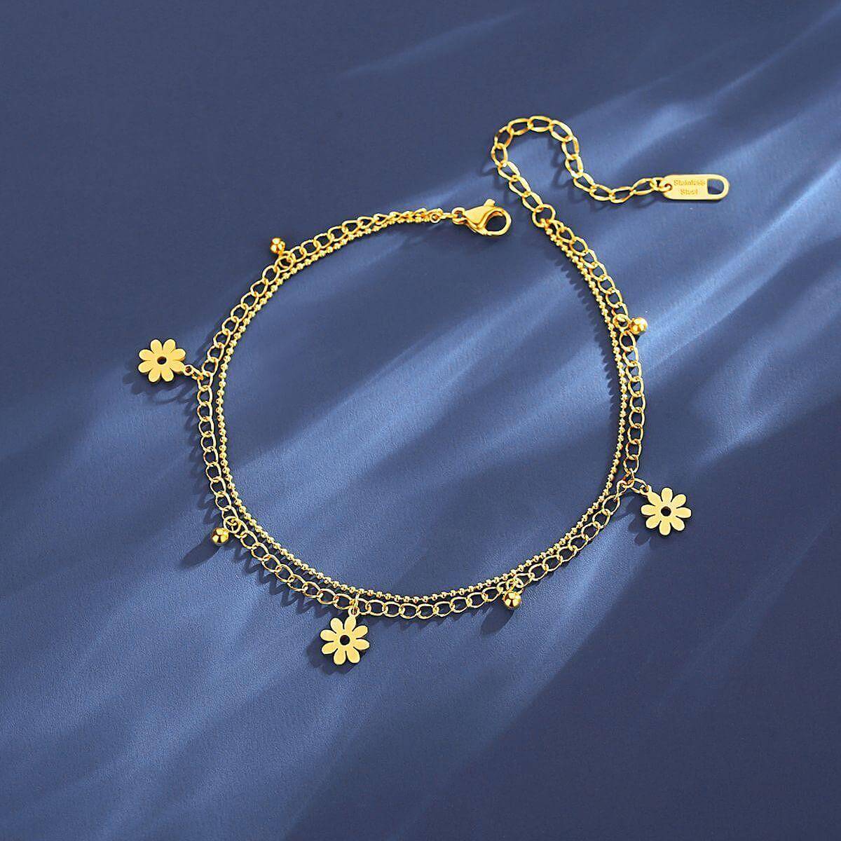 Двойна гривна за глезен с цветя и 18K златно покритие, елегантен лятен аксесоар.