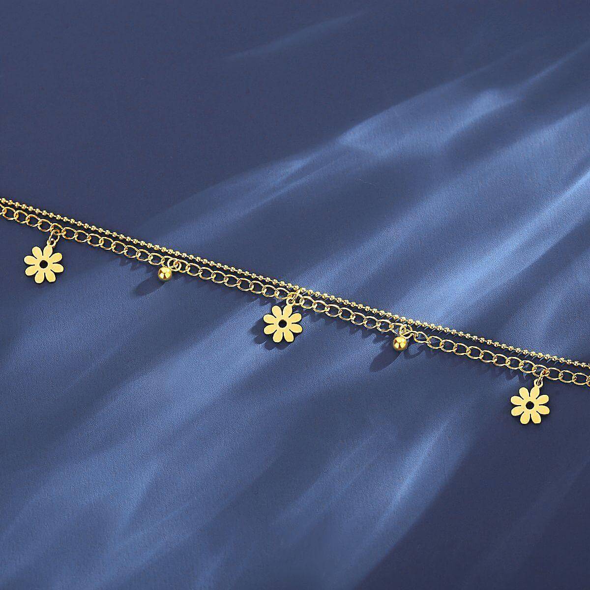 Двойна гривна за глезен с цветя и 18K златно покритие, идеална за лятото и специални поводи.