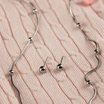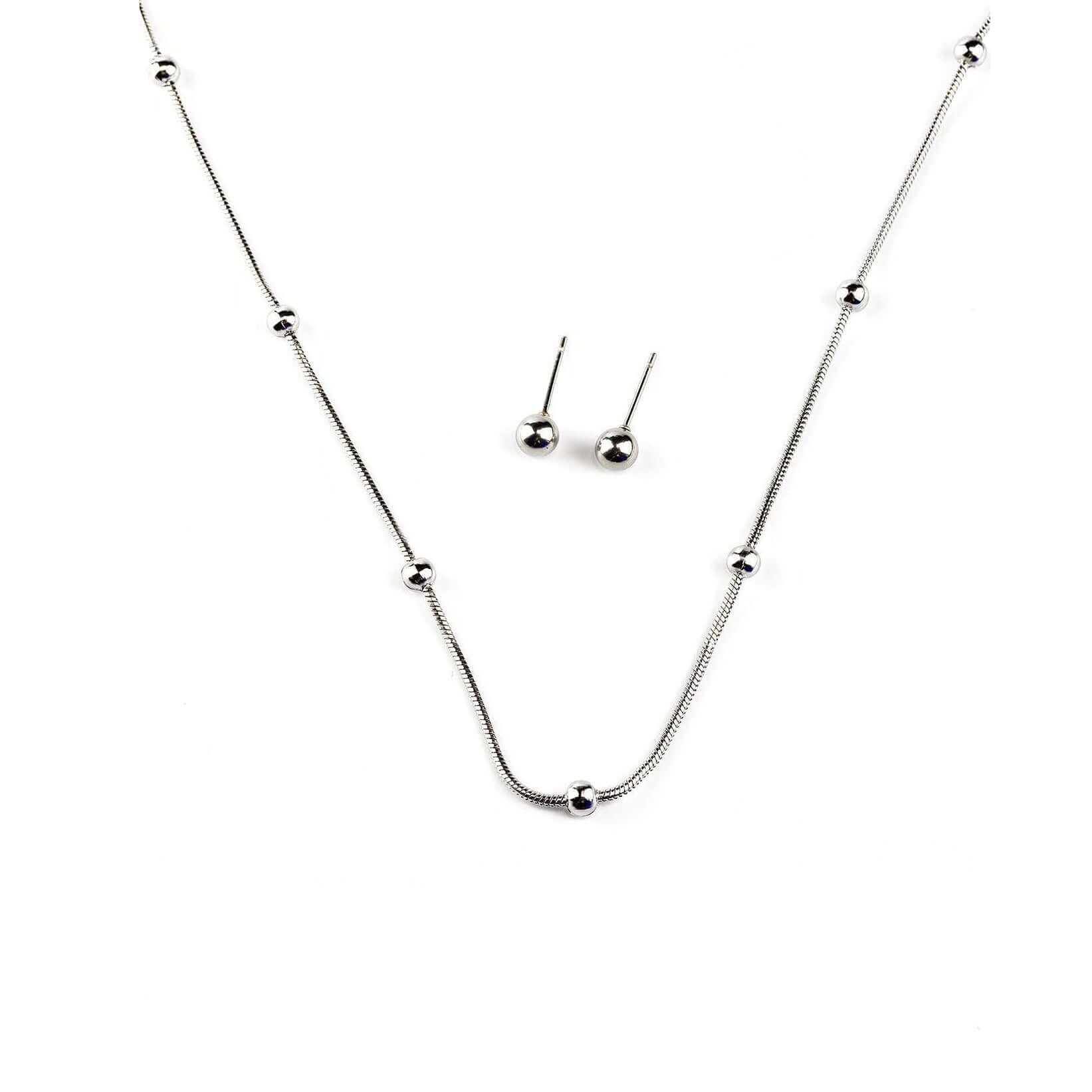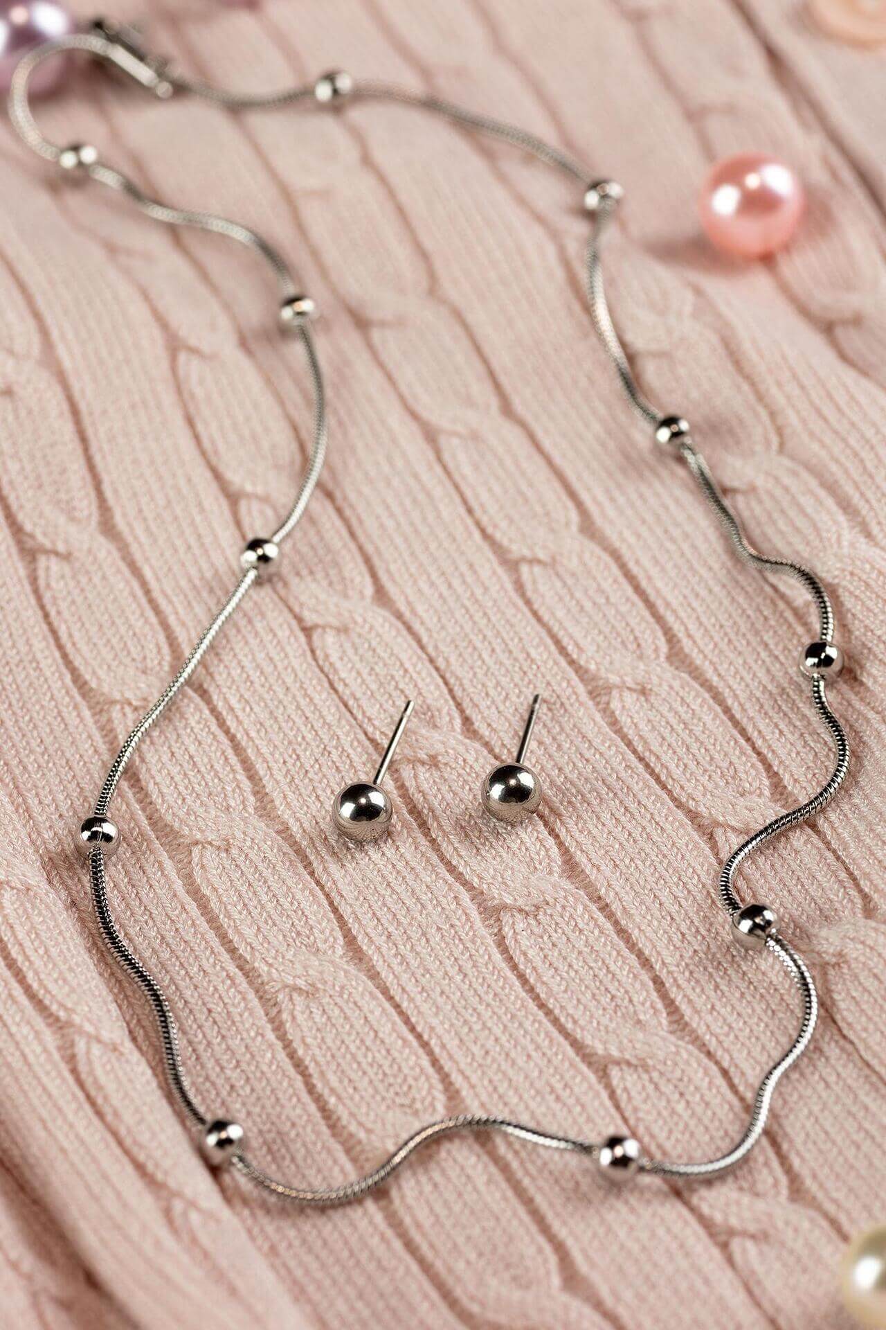 Комплект сребристи топчета - колие + обеци