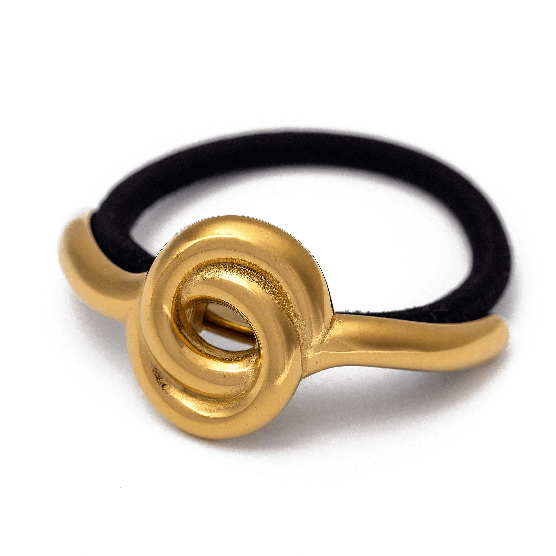 Ластик за коса Circle с уникален златист дизайн и черен ластик, изработен от качествени материали.