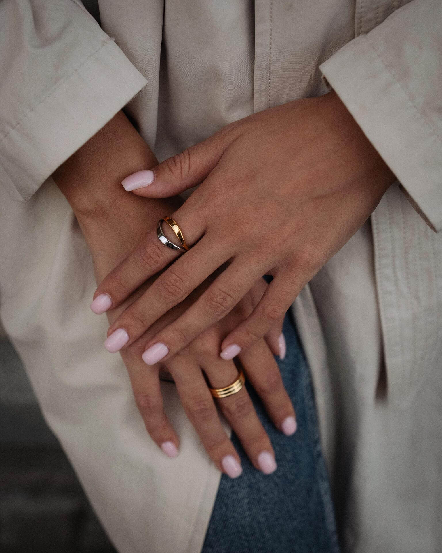 Пръстен "Хибрид" с 18K златно покритие. Изразете своя стил с този уникален пръстен "Хибрид". Съчетавайки модерен дизайн с елементи на класическа елегантност, този пръстен е създаден, за да бъде универсален акцент към всяка визия. Изработен от качествени материали, пръстенът е перфектен както за специални поводи, така и за ежедневно носене. Независимо дали искате да добавите финален детайл към вечерния си тоалет или просто да подчертаете индивидуалността си, пръстенът "Хибрид" ще добави нотка на лукс и стил към вашата колекция от бижута.