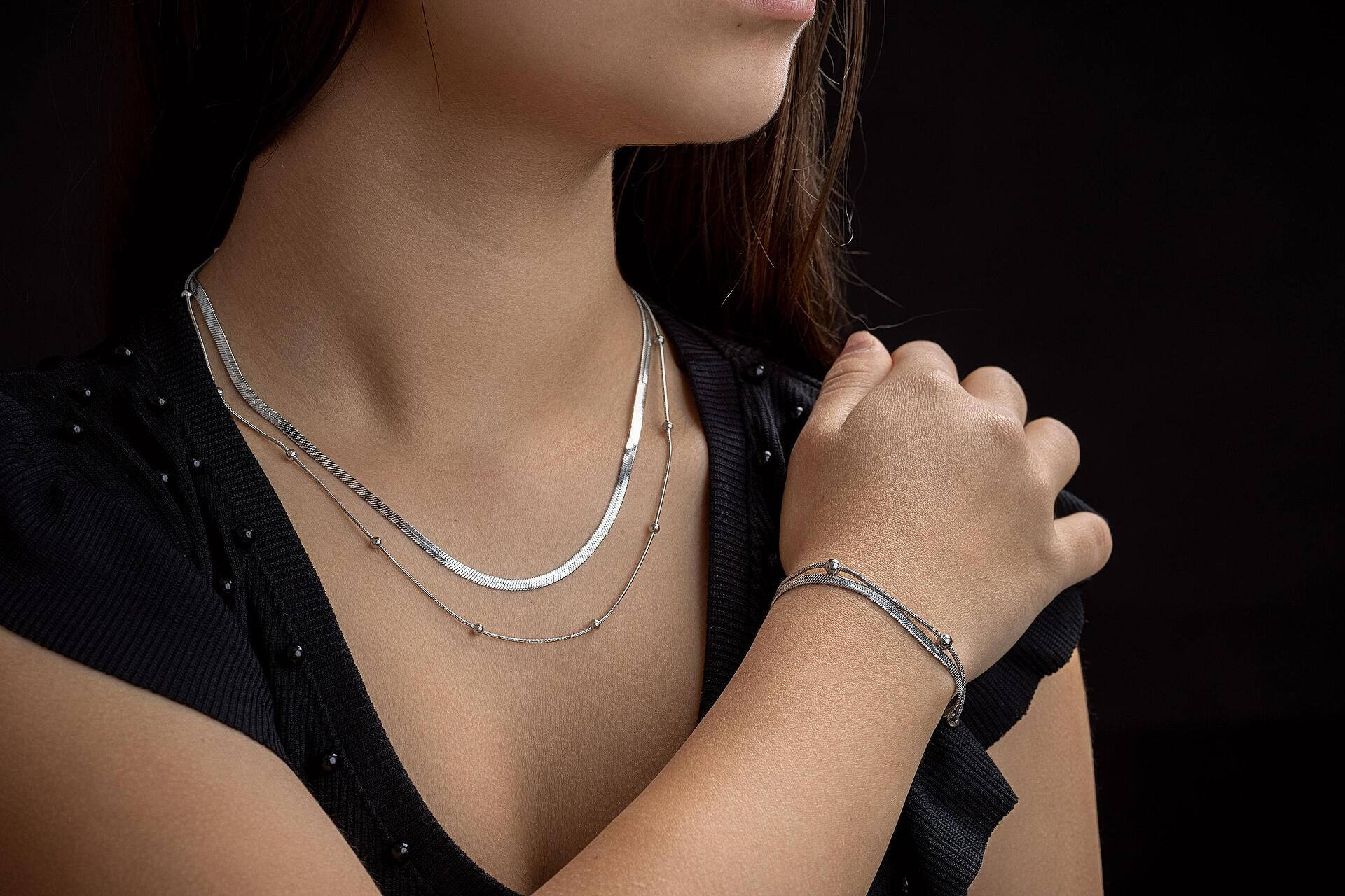 Сребрист Комплект Мека Гривна и Колие- Змийска Плетка